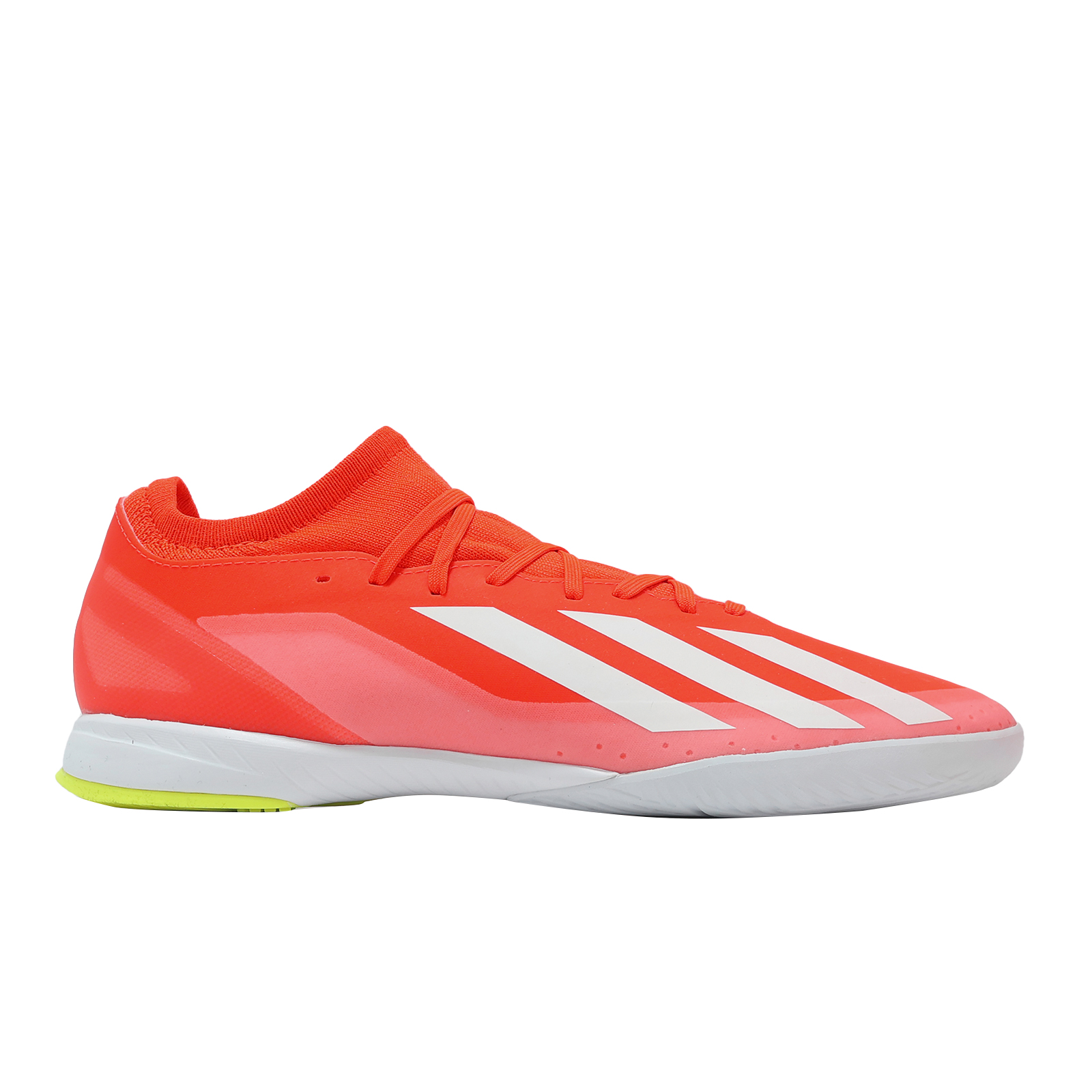 品牌: ADIDAS型號: IF0704品名: X Crazyfast League IN版型: 腳寬者建議大半號* 塗層織物鞋面及支撐平針織鞋領搭配堅硬的 TPU 外部鞋跟鎖,讓您牢牢繫住。