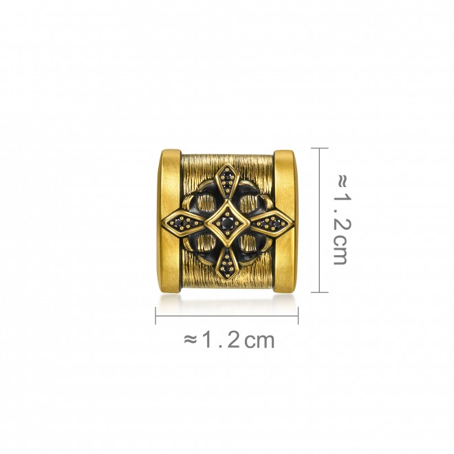 以中古十字架為設計元素,鑲嵌黑鑽,結合卓越硬黃金及酷黑工藝,刻劃深邃紋理,