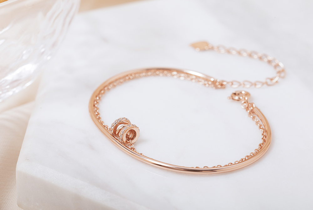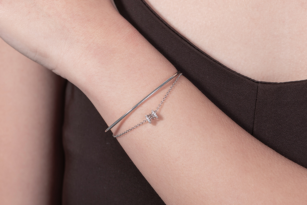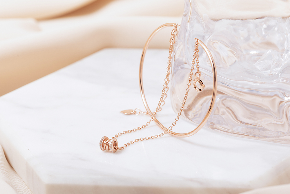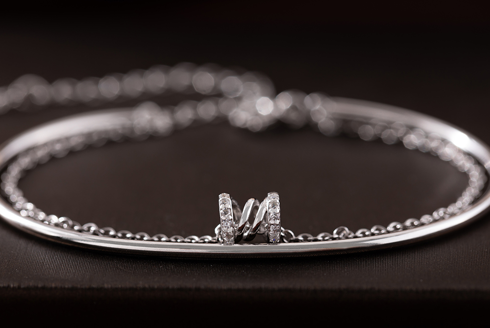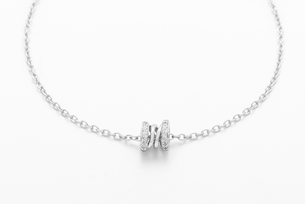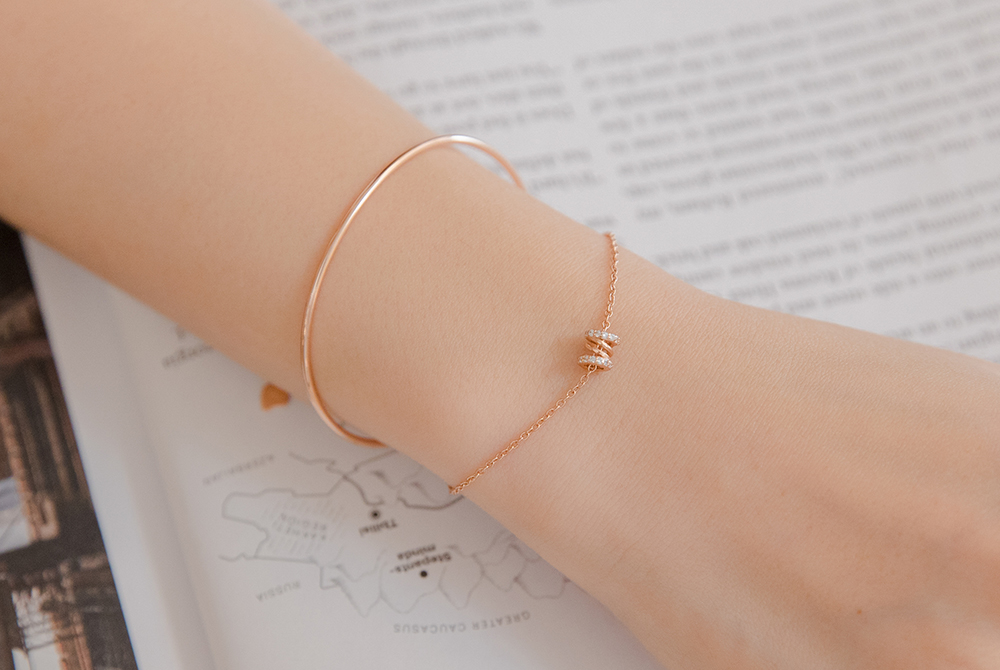 C型環搭配鍊條式的層次,小鑽墜飾讓整體展現不失優雅的俐落!