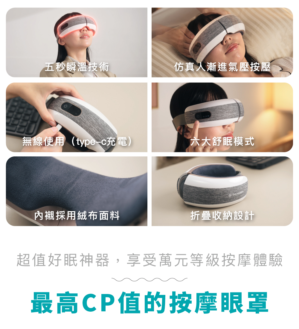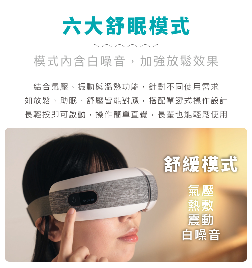 ●漸進氣壓按壓 模擬手掌輕壓節奏引導眼部肌肉放鬆