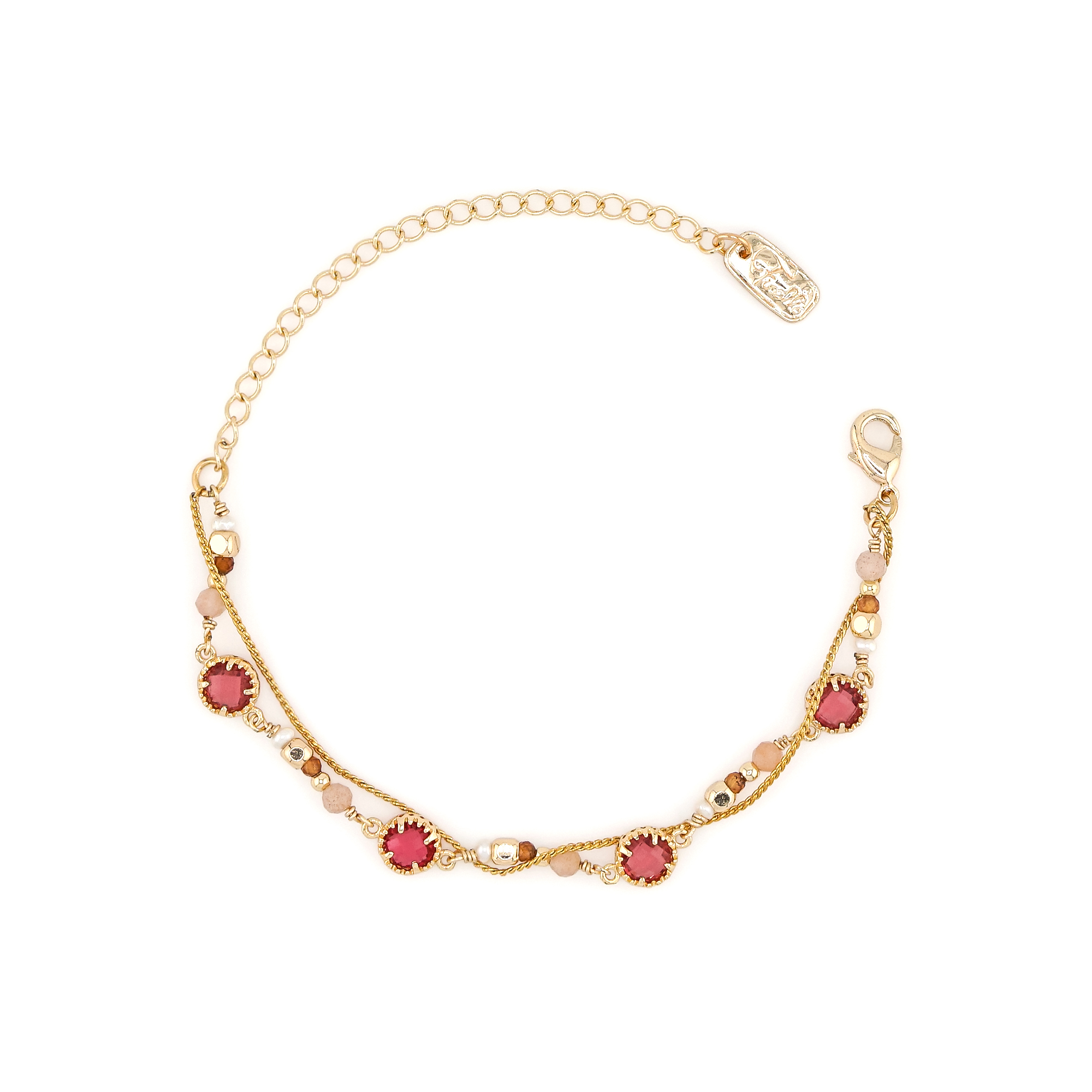 太陽石、橙石榴石、淡水珍珠、水晶琉璃、黃銅鍍18K金