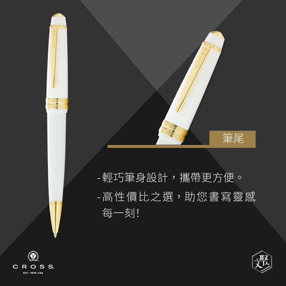 名稱:【CROSS】 Bailey Light貝禮輕盈系列金夾亮白原子筆 (原廠正貨)
