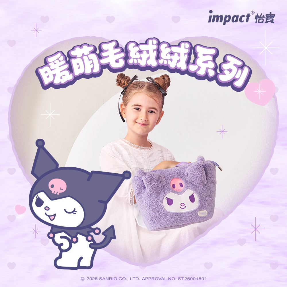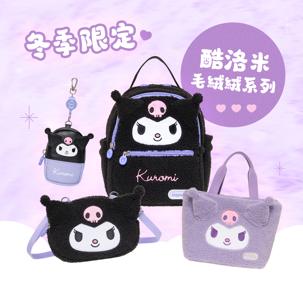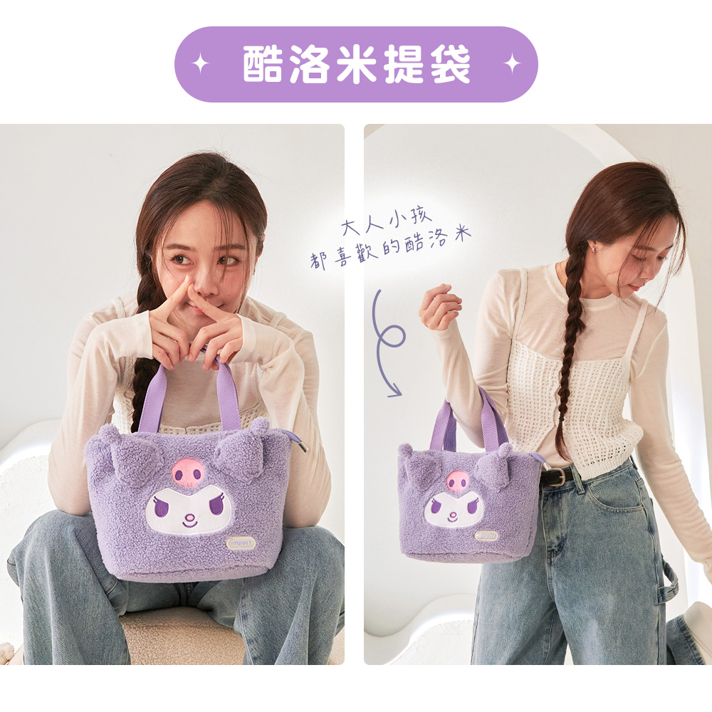 impact怡寶攜手三麗鷗推出酷洛米Kuromi絨毛提袋!紫色的外表不僅吸引目光,還是一個可以隨時隨地展現可愛風格的秘密武器!無論是外出還是逛街,酷洛米都能陪你一起時尚酷炫,讓你成為眾人矚目的焦點!快來擁有這個絨毛小夥伴,讓每一天都充滿驚喜和笑聲吧!