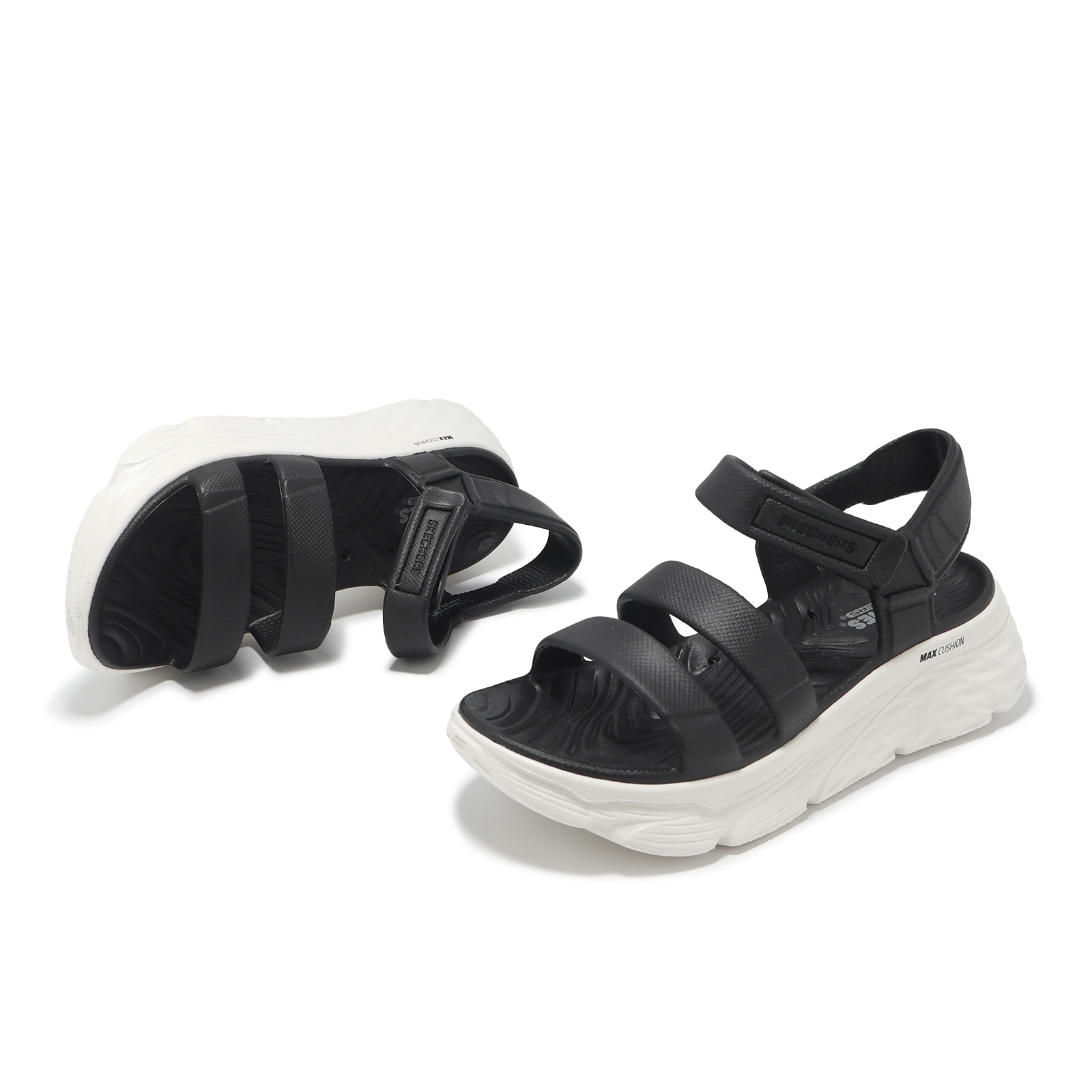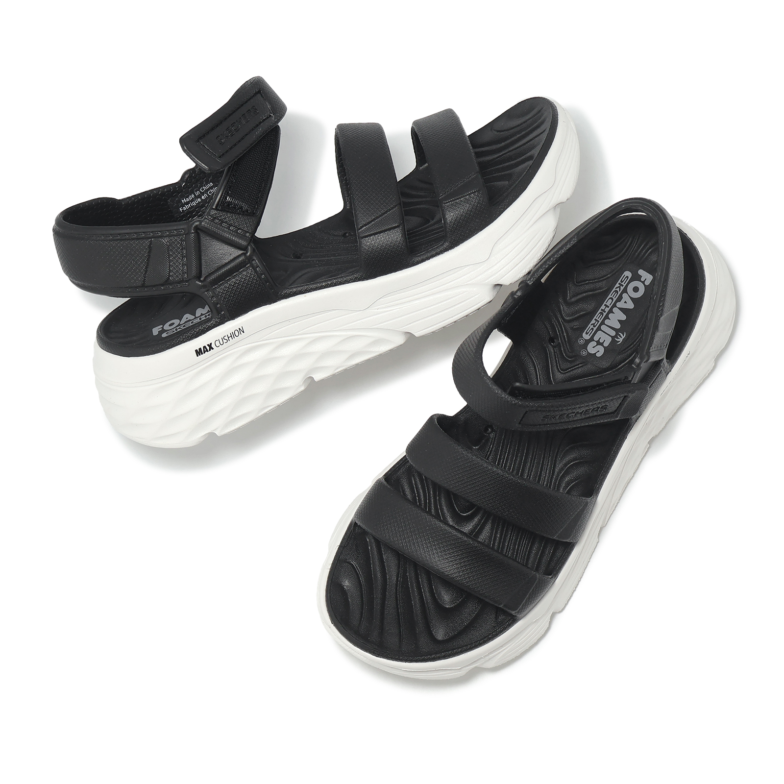 品牌: SKECHERS型號: 111126-BKW品名: Max Cushioning-Aura版型: 版型正常MAX CUSHIONING FOAMIES 系列涼鞋,加厚的中底結構,除了提供良好的避震緩衝,也能拉高您的腿部線條,讓您更加高挑,享受輕鬆舒適的腳感。