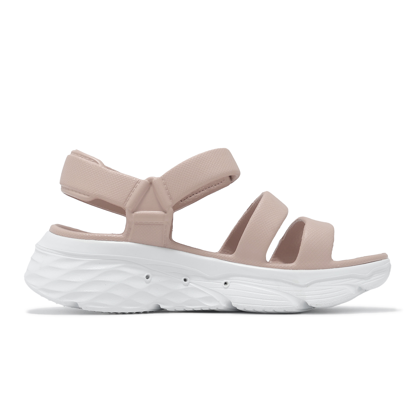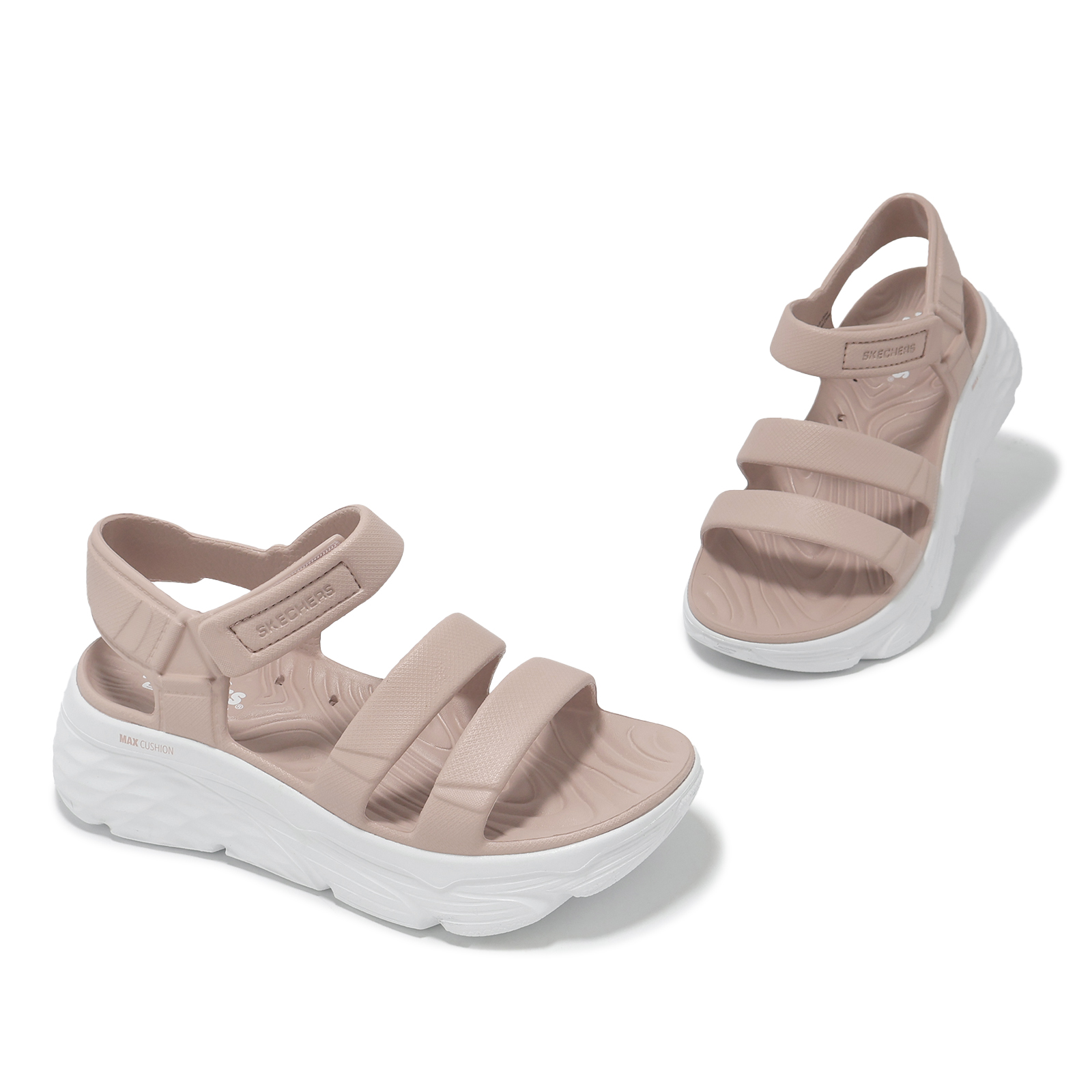 品牌: SKECHERS型號: 111126-LTPK品名: Max Cushioning-Aura版型: 版型正常MAX CUSHIONING FOAMIES 系列涼鞋,加厚的中底結構,除了提供良好的避震緩衝,也能拉高您的腿部線條,讓您更加高挑,享受輕鬆舒適的腳感。