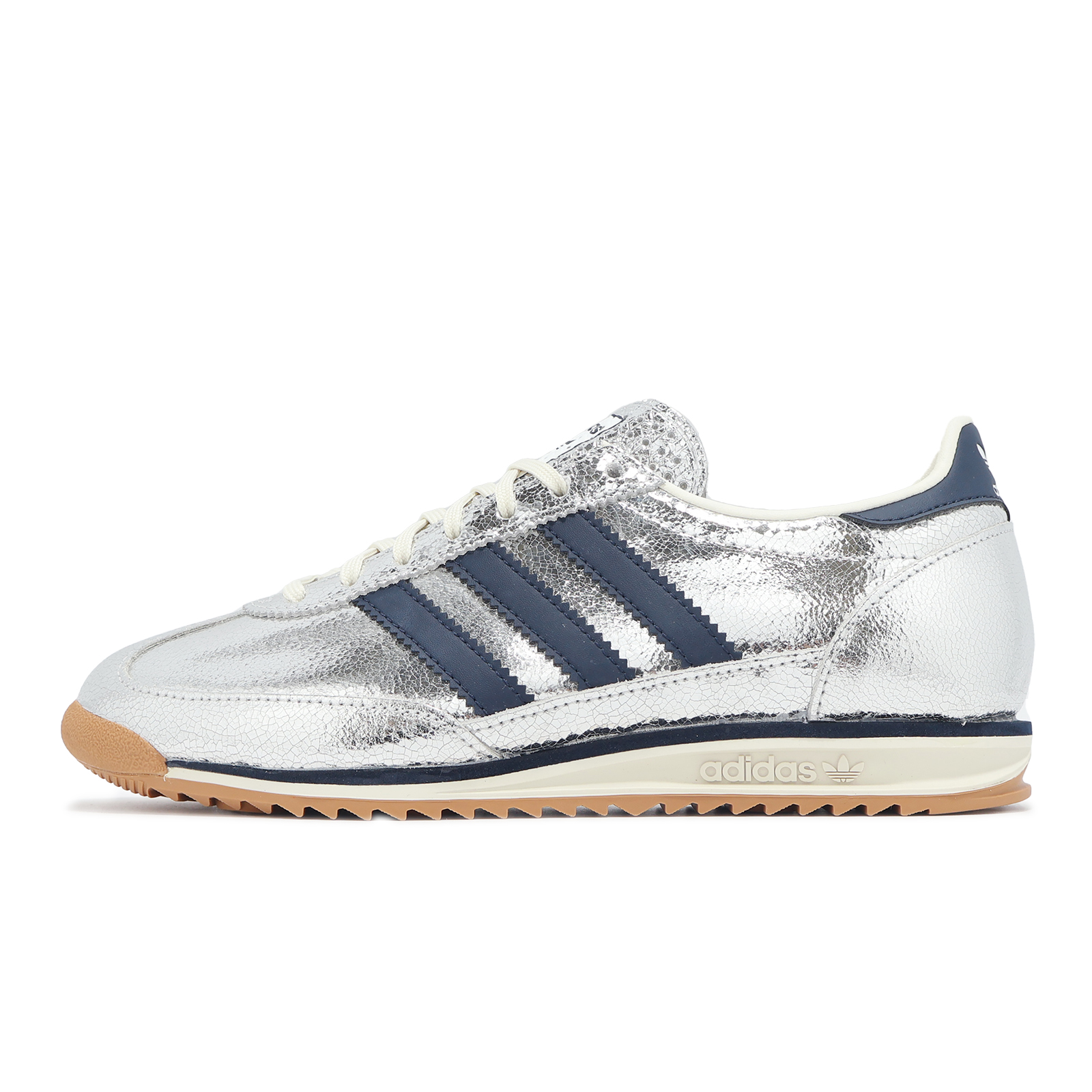 品牌: ADIDAS型號: JH8654品名: SL 72 OG W版型: 版型偏大,建議小半號* 70 年代經典鞋款,以跑步鞋款為設計靈感,採用閃亮銀色皮革鞋面,搭配 T 型鞋頭製造,打造時尚經典的復古風格。* 搭配 Eva 中底設計,給予雙足在任何時刻都保持輕盈舒適腳感。* 橡膠特殊紋路大底提供足夠的抓地牽引效果。