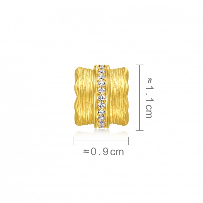 以柔美曲線為設計元素,採卓越硬黃金電鑄工藝鑲嵌鑽石,中軸閃耀美鑽結合勾絲工藝,