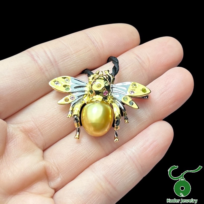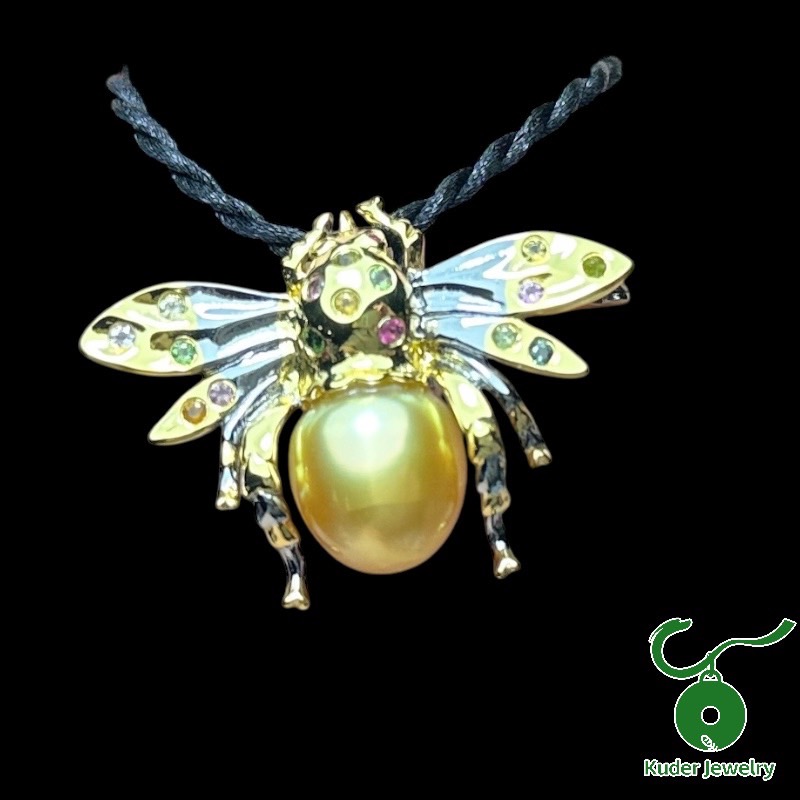 [快速出貨]【Kuder Jewelry】天然南洋珍珠(金珠)義大利金工蜜蜂胸針墜飾二用款附珠寶鑑定書