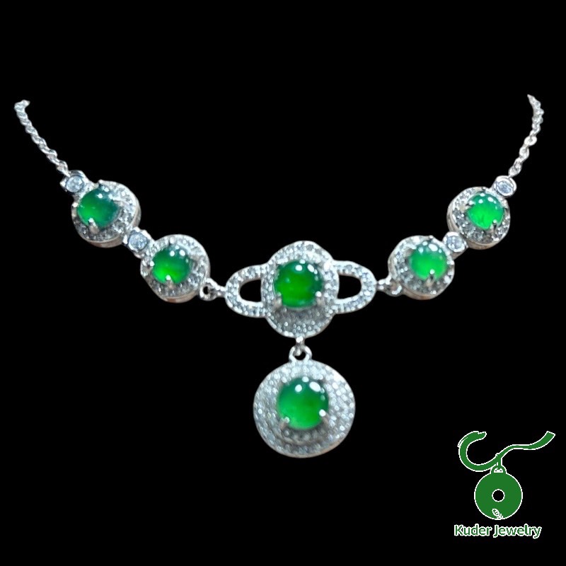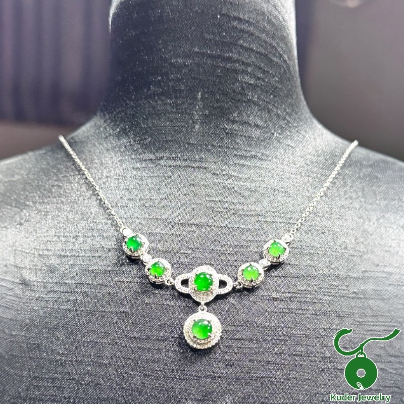[快速出貨]【Kuder Jewelry】天然A貨老坑冰種翡翠經典套鍊附珠寶鑑定書贈本命年守護手鍊