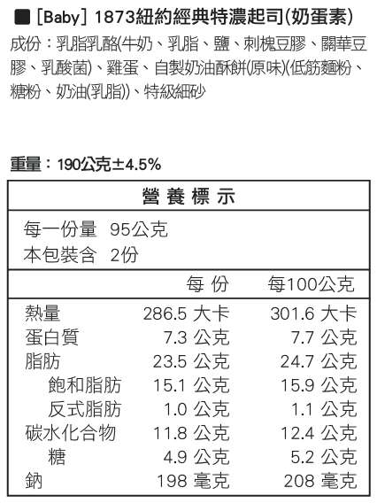 名稱:ChizUP!【BABY日曆】烙印專屬日期_1873紐約經典特濃起司蛋糕