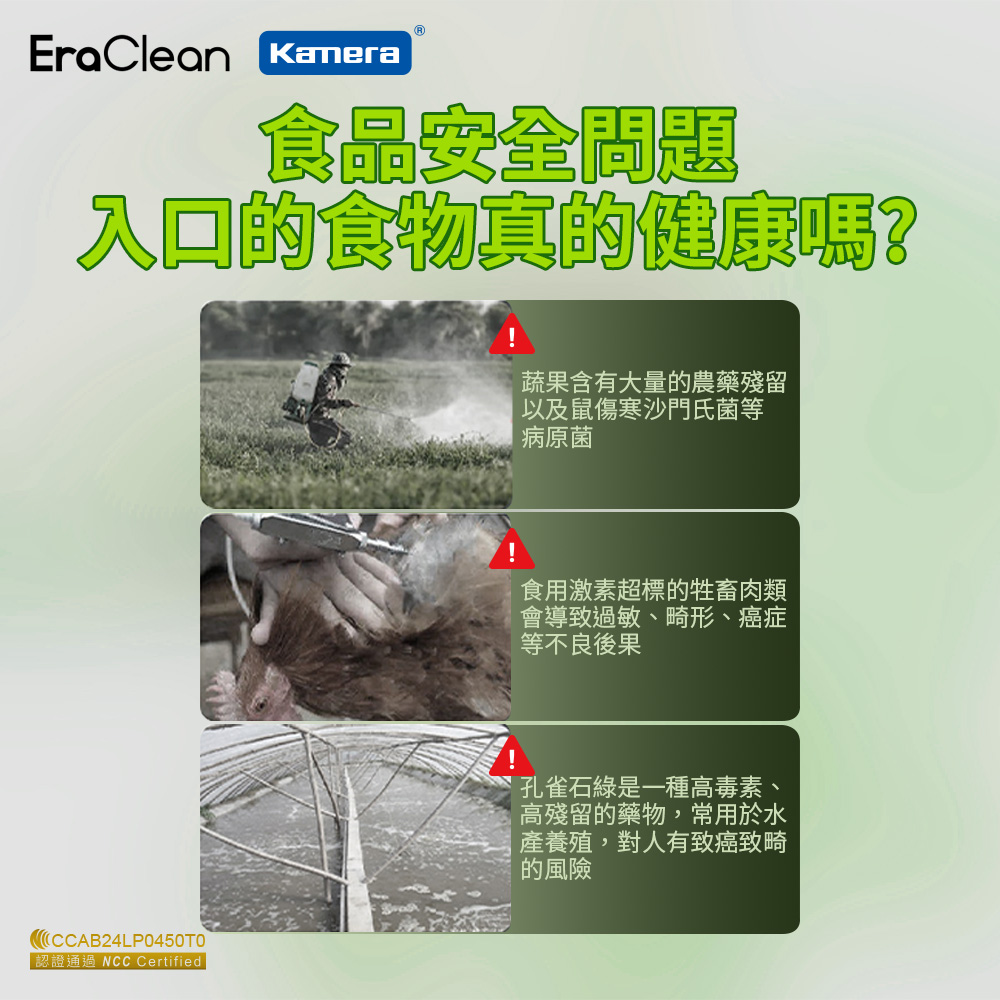 產品特點 ● 採用電解水洗淨技術,能夠徹底清洗蔬果表面的塵土、農藥殘留等雜質● 深度清洗/標準清洗雙模式可選,可根據食材類型選擇適合模式● 可懸掛設計,尺寸輕巧,不占空間● 採用刀片式電解片,洗淨效率大提升● 透過電解水產生羥基離子,可去有效去除部分食材表面上附留殘渣與雜質● 蔬菜、水果、肉類、海鮮皆適用,現代家庭廚房中實用的清潔助手【購買本產品即視為已查看並接受本公司所有相關內容】 感謝您購買本公司產品,如有售後問題,請聯繫本公司或來電客服,加入Line@或FB,直接反應商品問題:若收到貨未使用時,即有非人為損壞狀況,請立即拍照與拍攝影片佐證! 注意:猶豫期並非試用期,您所退回的商品必須回復原狀(須回覆至商品到貨時的原始狀態)並且保持〔完整封條包裝〕(包裝商品封條、本體、配件、贈品、保證書、原廠包裝及所有附隨文件或資料的完整性),切勿打開封條或缺漏任何配件或損毀原廠外盒,若因此產生整新費用等必要支出,將由您負擔,且不受限無條件退貨之規範。產品規格 品牌:EraClean品名:mini蔬果清洗機型號:GFC11顏色:白色產品材質:HIPS額定輸入電壓:5V⎓額定輸入電流:1A額定工作功率:5W電池容量:1600mAh適用範圍:蔬菜、水果、肉類、海鮮NCC認證字號:CCAB24LP0450T0產品尺寸:約140.5×50×33mm包裝尺寸:約155x63x83mm產品淨重:約235g產品毛重:約336.7g包裝內容:主體產品x1、Type-C充電線x1、說明書x1、充電座x1保固:非人為因素之損壞,台灣代理商保固180天。備註:此賣場不含主機相關展示商品 Copyright © 2024 佳美能科技(股),保留一切權利。