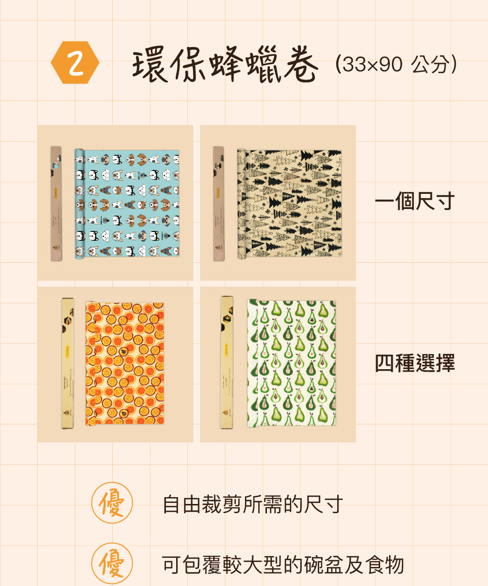 * 天然無毒環保,蜂蠟與有機棉布結合,絕佳隔絕效果* 阻隔空氣減緩氧化變質,減少蔬果的水分流失* 天然的保鮮膜,減塑環保,可清洗重複使用* 具有「抗菌、防水」的特性,無需擔心發霉* 可完全自然分解,對地球無負擔*尺寸33*90cm可自行剪裁成適合的大小