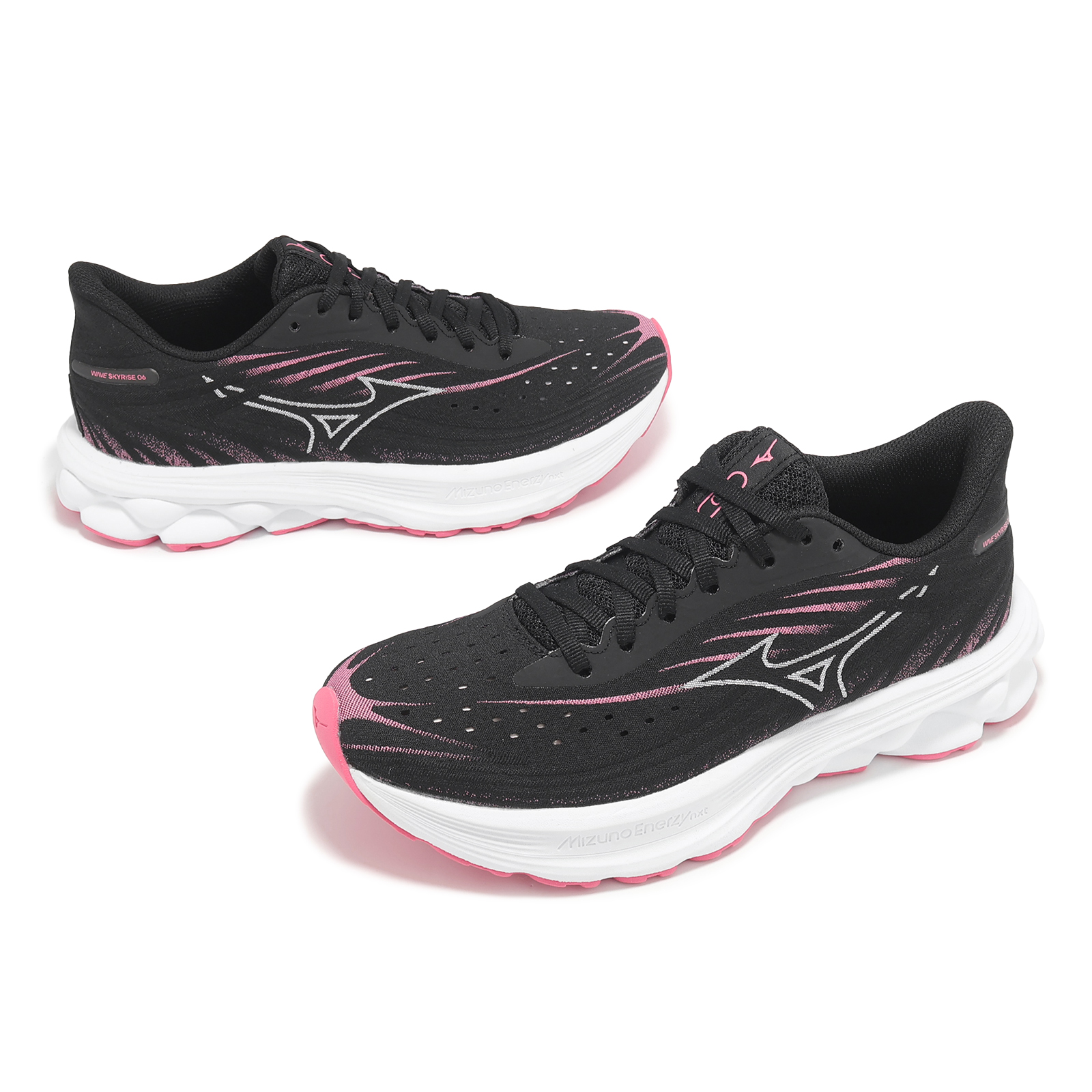 品牌: MIZUNO型號: J1GD2509-25品名: Wave Skyrise 6版型: 版型正常* 鞋面採用一片式 SMOOTH STRETCH WOVEN 平織網布構成,提供雙足穩定包覆感,鞋頭較前一代增加更多透氣孔,透氣效果提升。