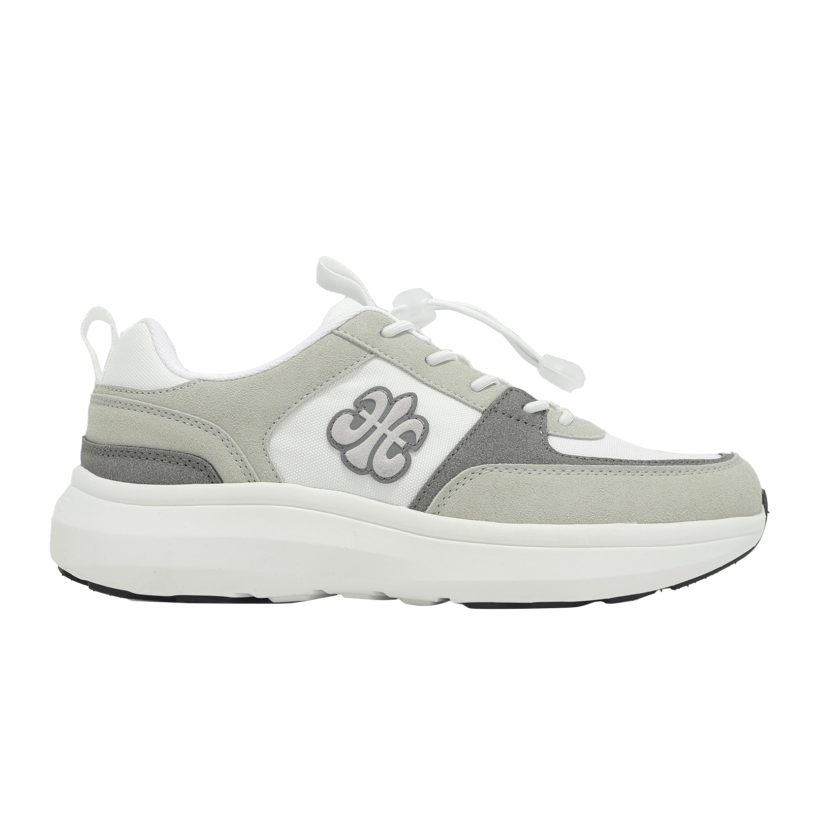 * 鞋面的設計,以飛織紡織布及牛皮絨的拼接,展現出質感絕佳的層次之美。
