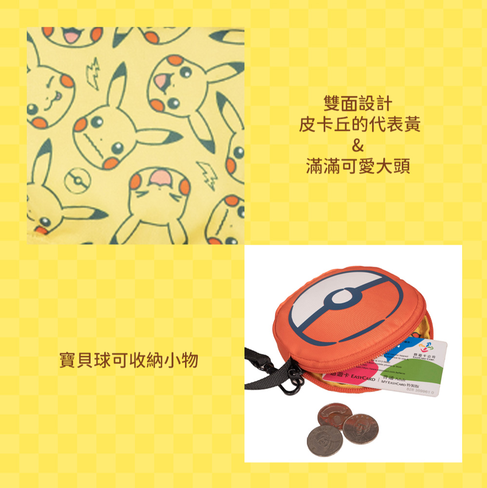 寶可夢超人氣「皮卡丘」Q萌登場滿版的線條皮卡丘印刷料,選用霧黑色五金, 更增添整系列的質感。將皮卡丘最具代表性的黃色設計在內部, 多種表情豐富可愛日常中非常實用的包款,結合寶可夢可愛的圖樣,每每都帶來療癒感受