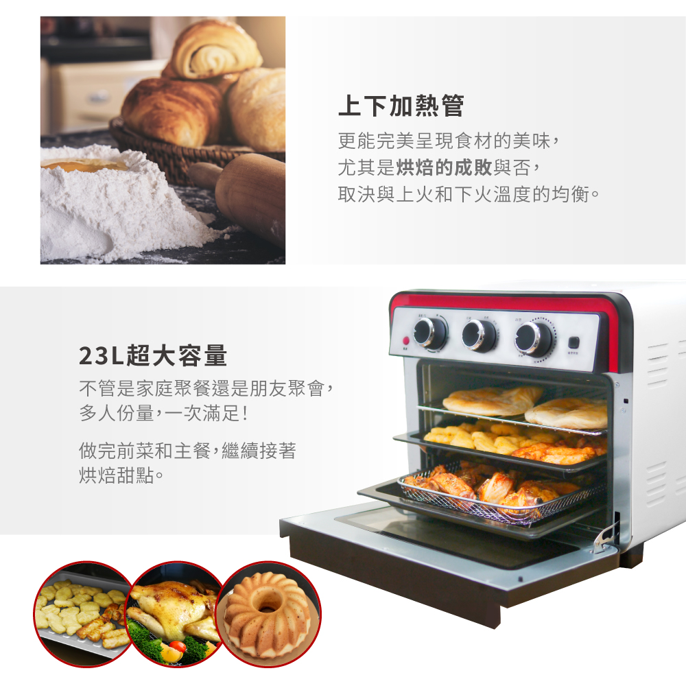 真正的大容量『23L』, 一次滿足『多樣菜色』以及『多人份食材』的氣炸烤箱。