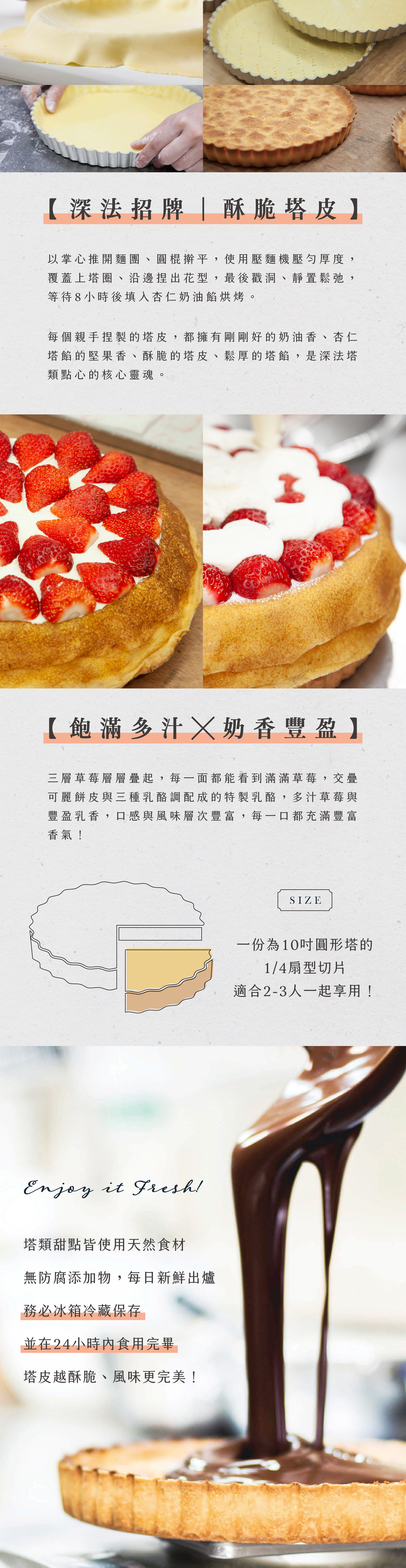 成分:麵粉、奶油、糖、雞蛋、水、杏仁粉、新鮮草莓、鮮奶油、柑曼怡橙酒、白乳酪、馬茲卡彭乳酪、貝禮詩奶酒、cream cheese、香草莢