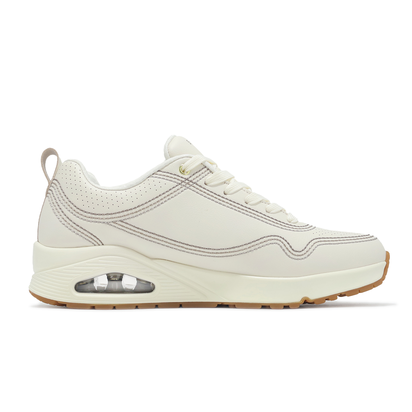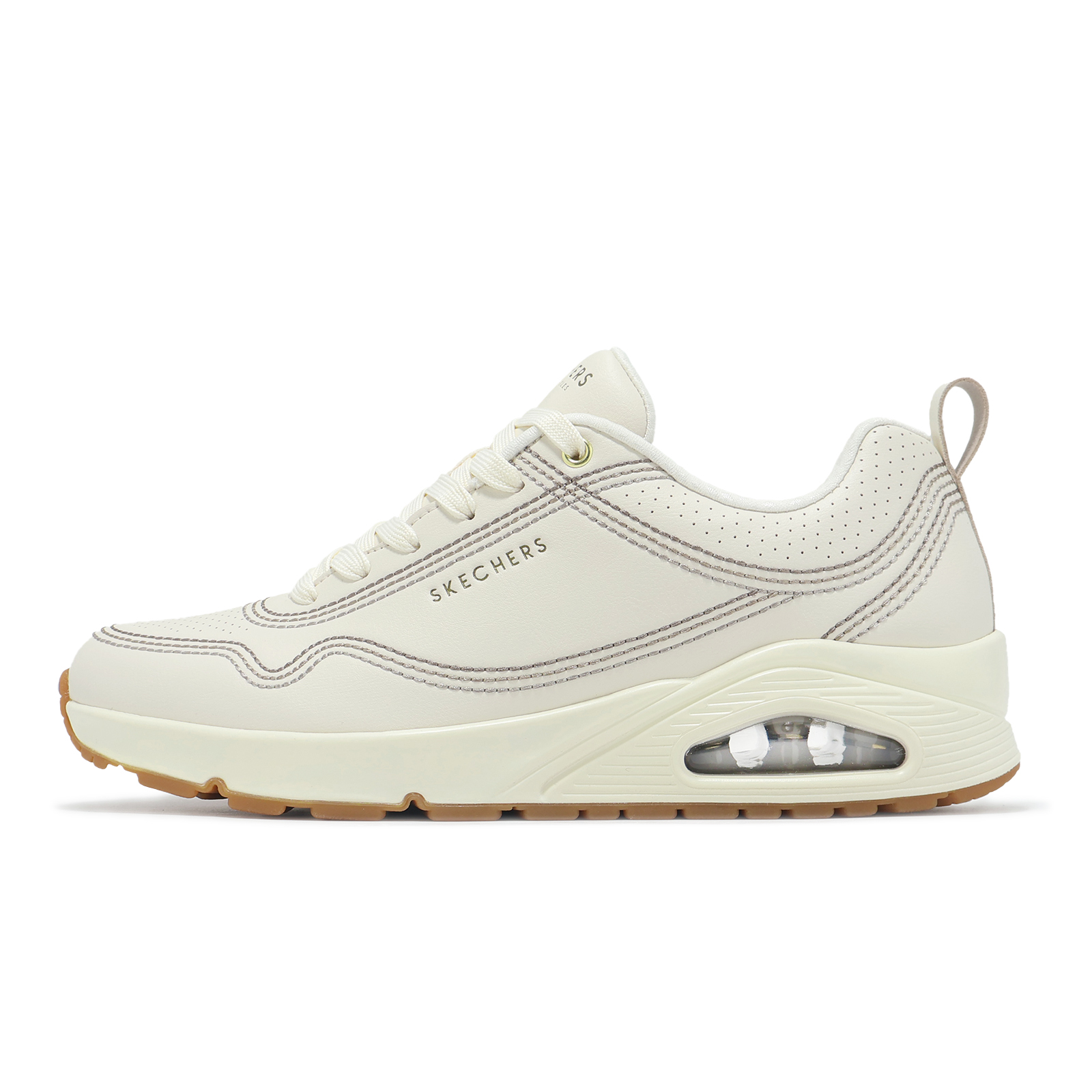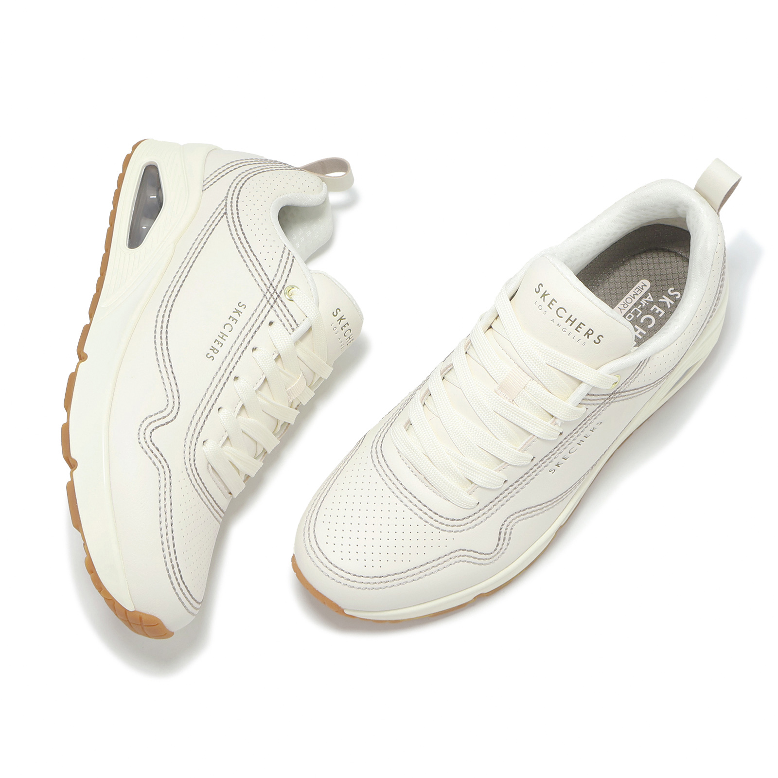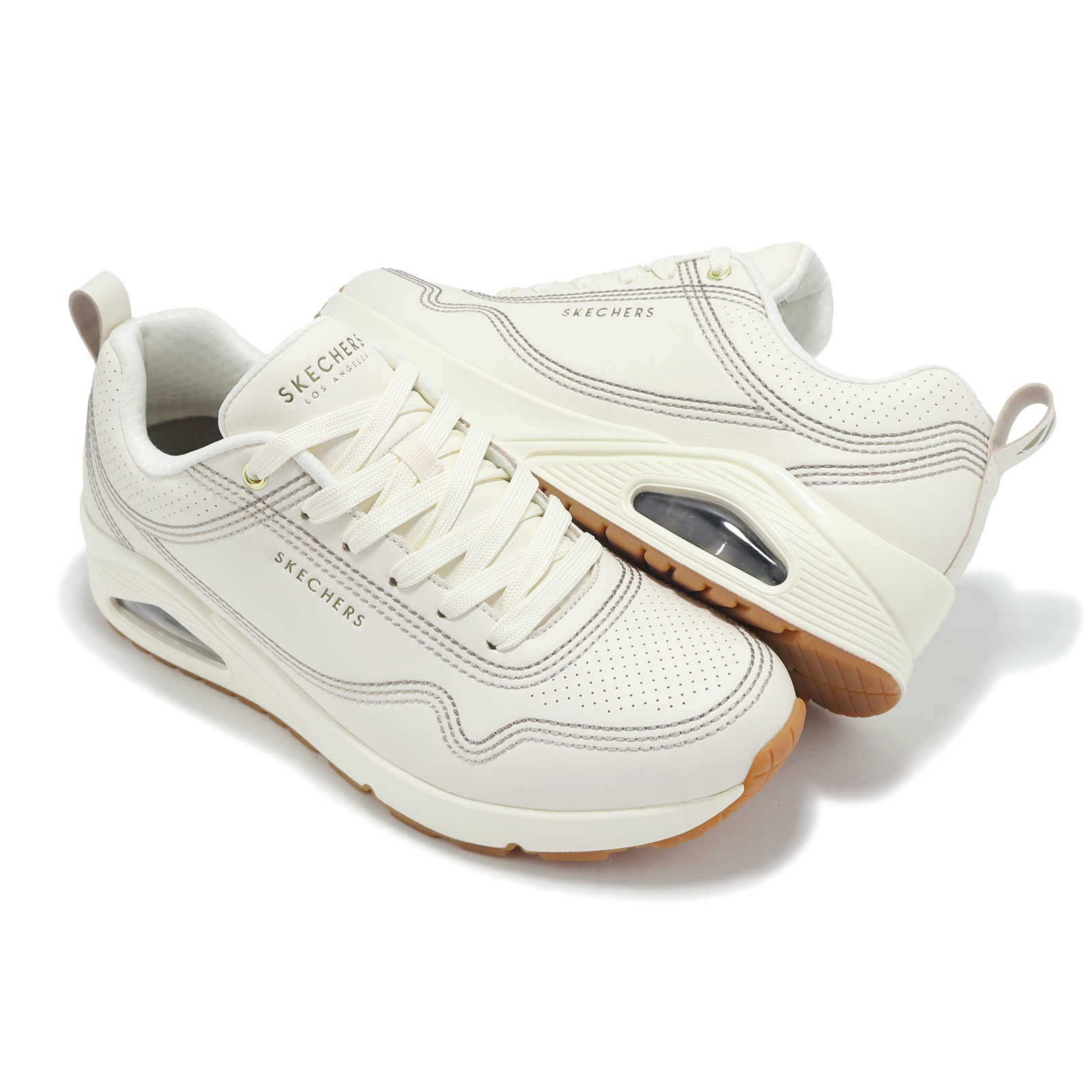 品牌: SKECHERS型號: 183014-OFWT品名: Uno-Stitch Craft版型: 版型正常*1.時尚綁帶氣墊運動鞋款。
