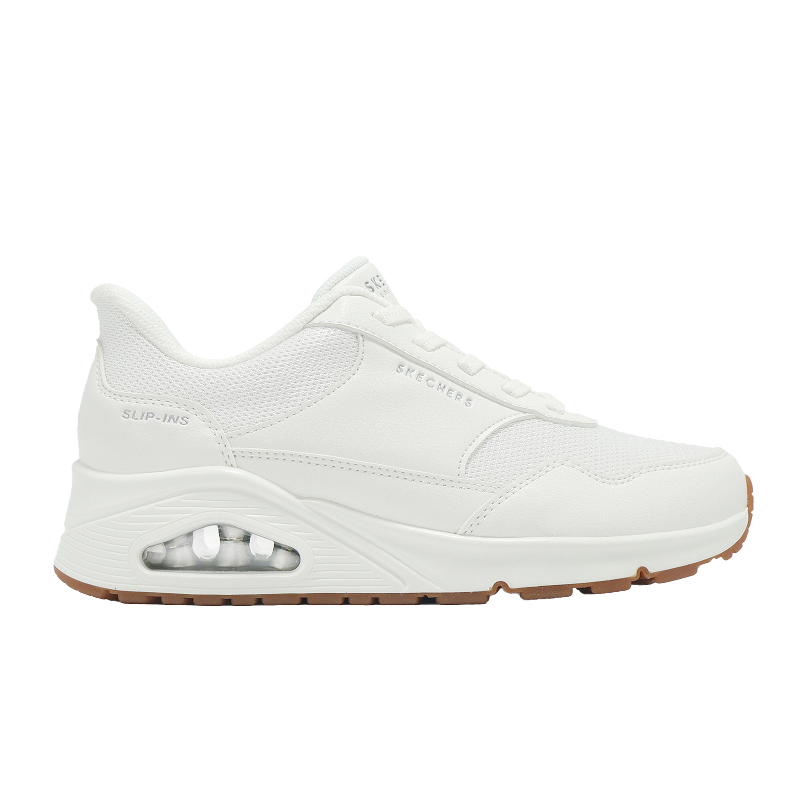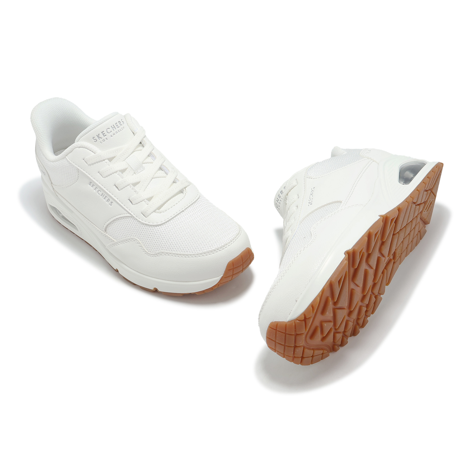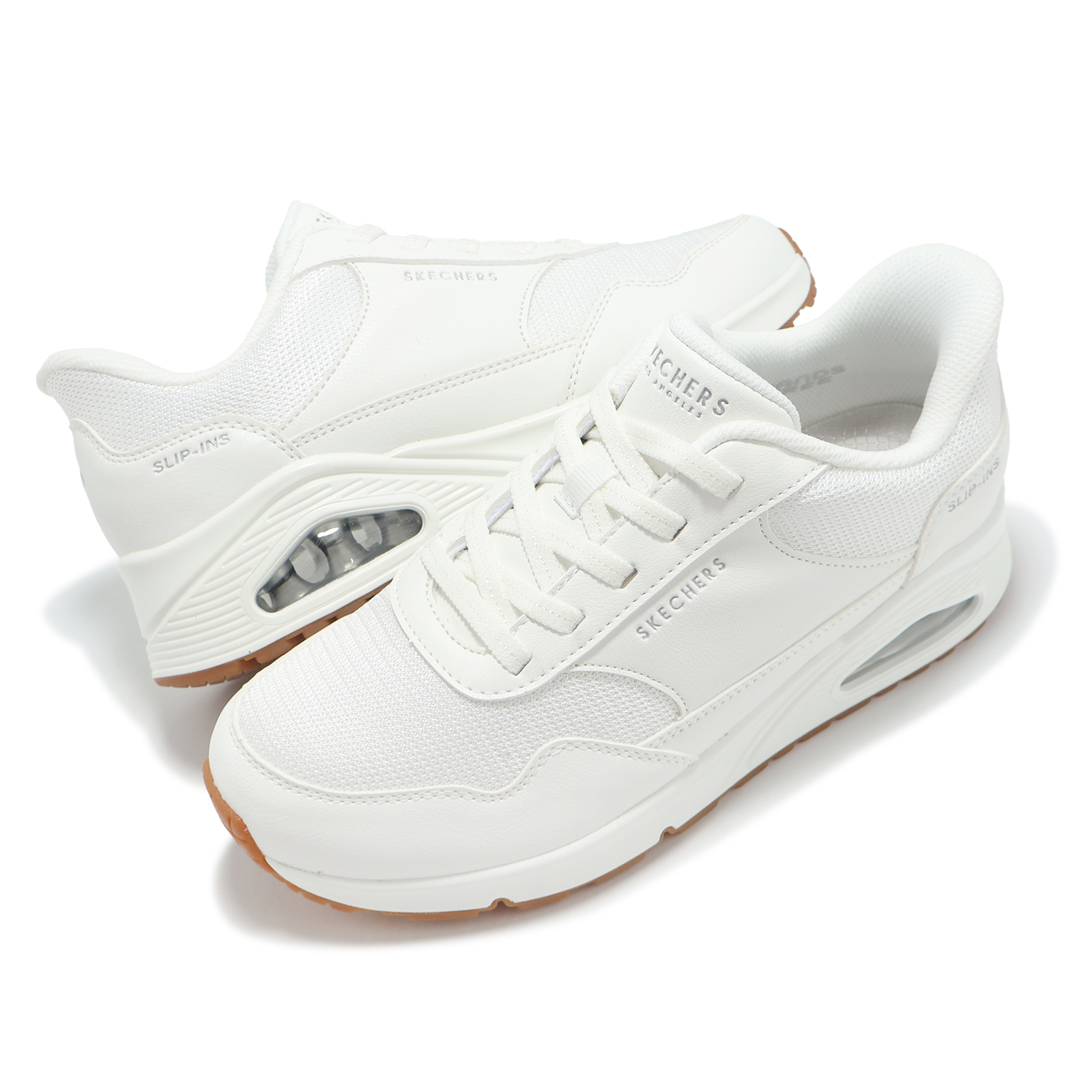 品牌: SKECHERS型號: 177117-WWHT品名: Uno-Banksia Slip-Ins Wide版型: 版型正常*1.時尚綁帶氣墊運動鞋款。
