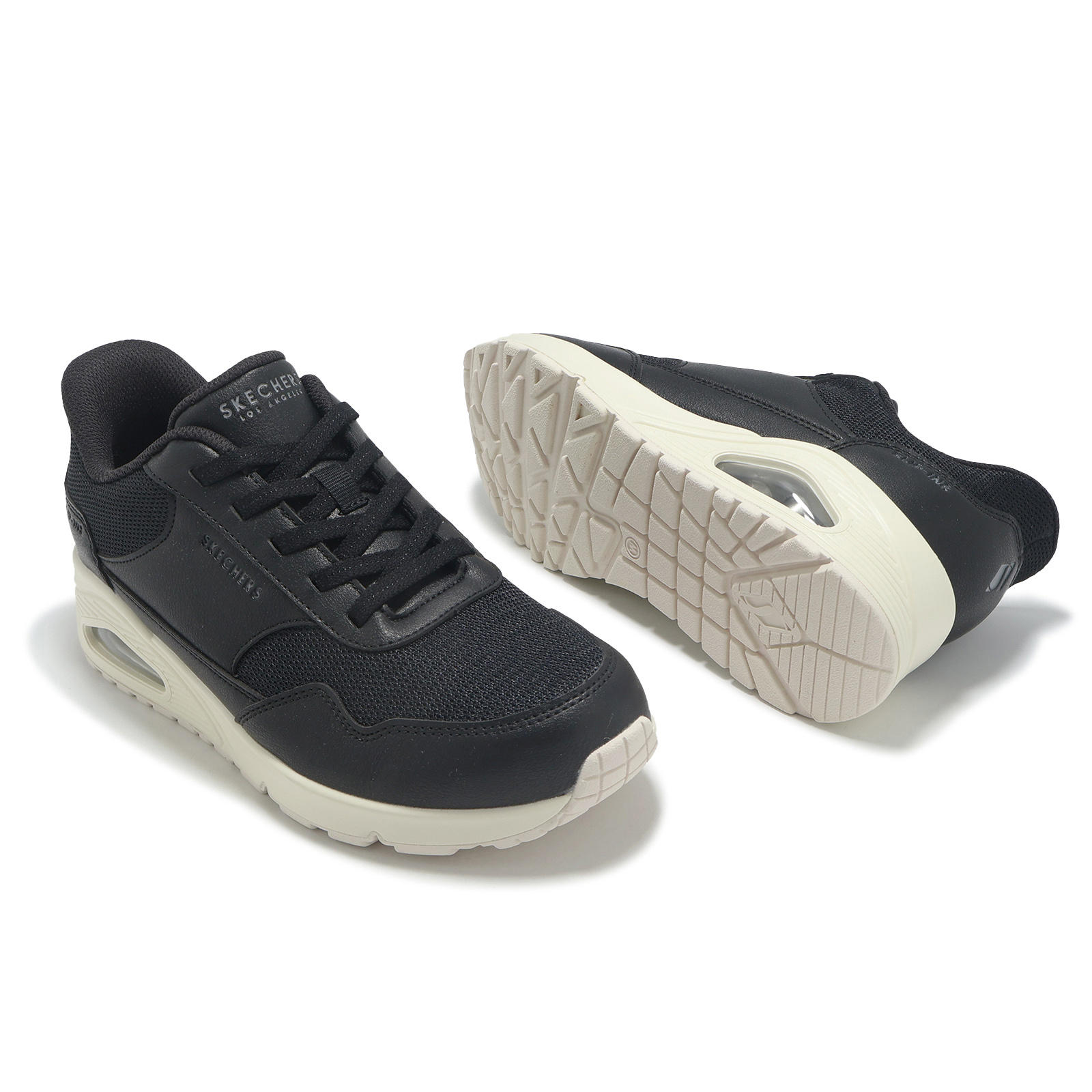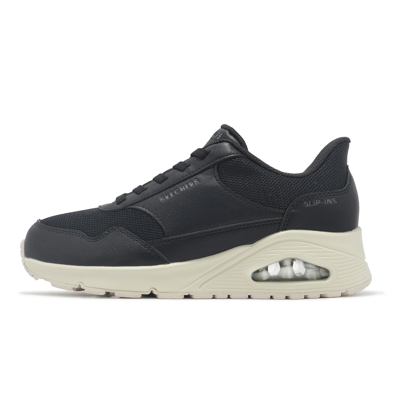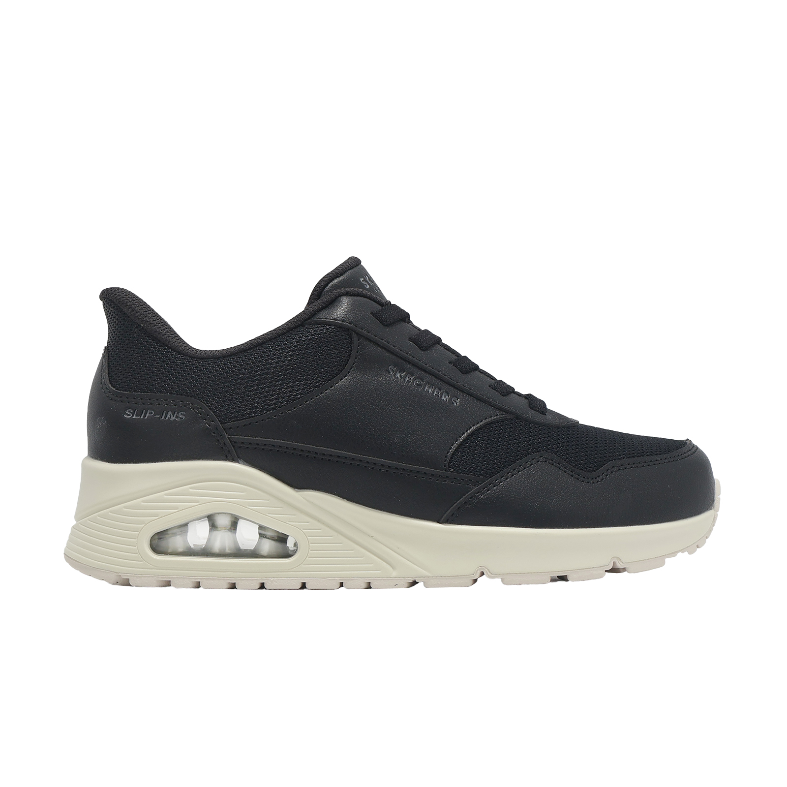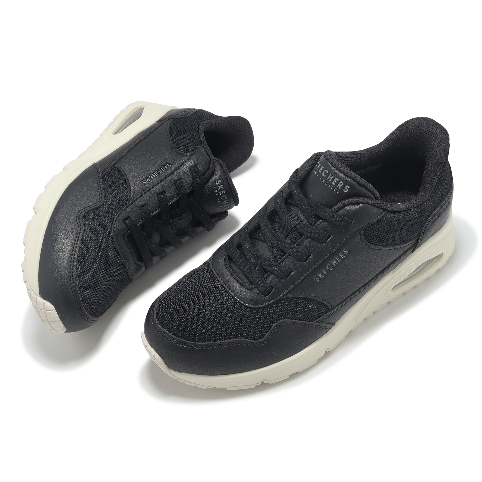 品牌: SKECHERS型號: 177117-WBLK品名: Uno-Banksia Slip-Ins Wide版型: 版型正常*1.時尚綁帶氣墊運動鞋款。
