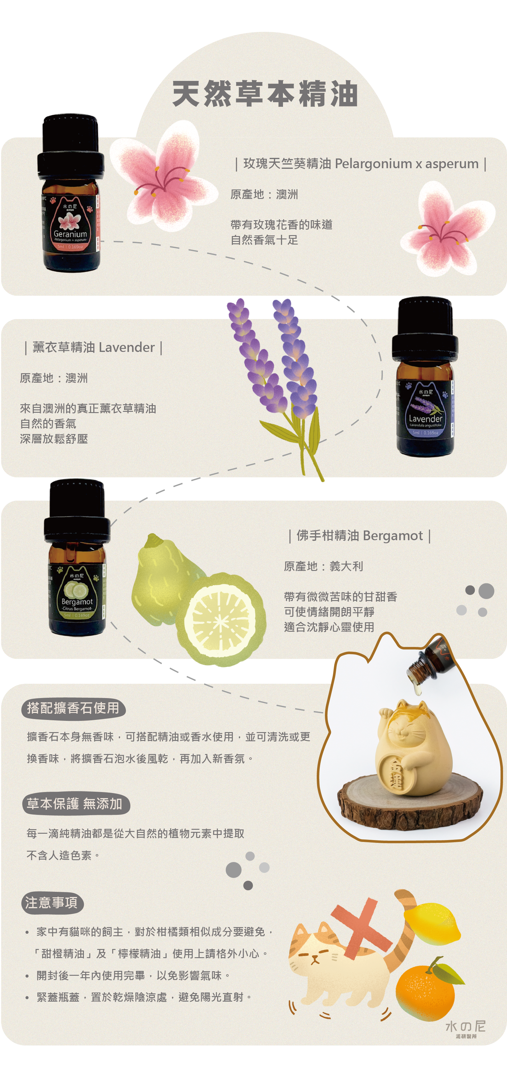 內容物:胖胖招財招福貓 (小)原木樟木片一片(隨機)+精油一瓶