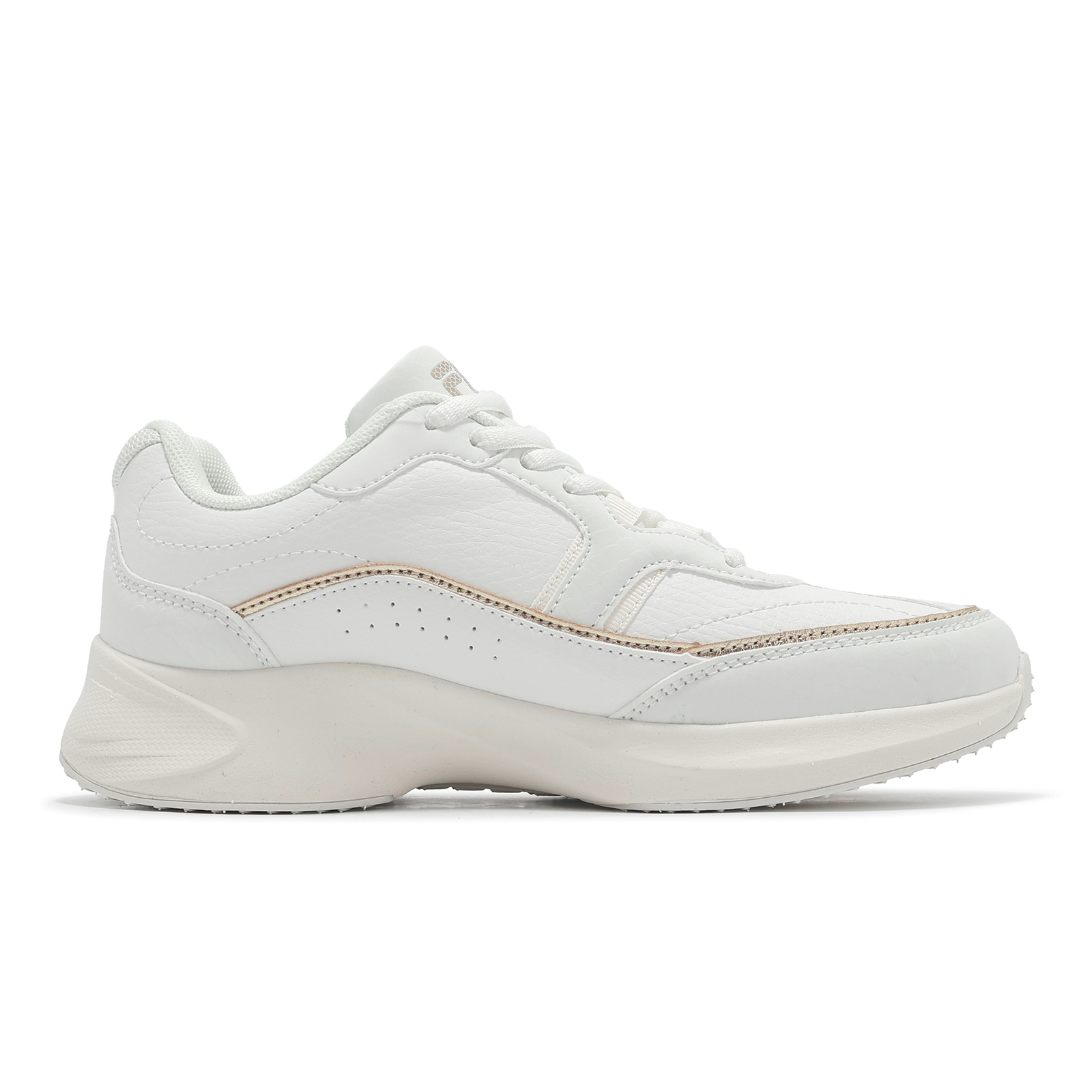 * 中底採 EVA 泡棉材質設計,提供雙足舒適柔軟且具彈性的足感效果,並有效減緩地面給予雙足的衝擊力。