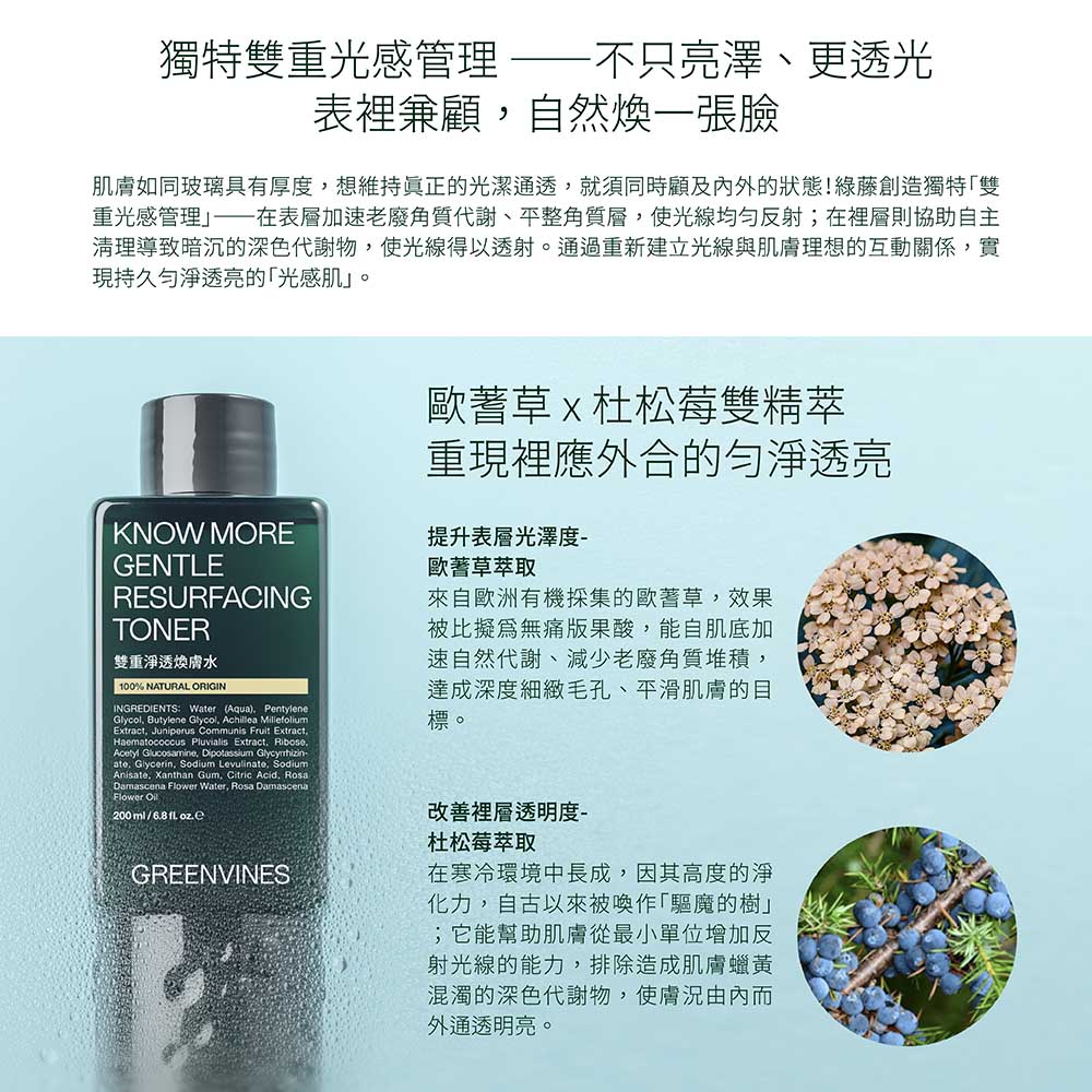 長效透亮,取決於肌膚表裡與光線的互動方式!綠藤獨特「雙重光感管理」主張,打造兼顧光澤度與透明度的光感肌加速器,多些持久的勻淨透亮,少些暗沉蠟黃與粗糙無光。了解更多表裡兼顧的深度煥膚,揮別流於表面的強行拋光。Dcard 網友實測 4.6 分好評推薦:平滑、透亮、改善粉刺