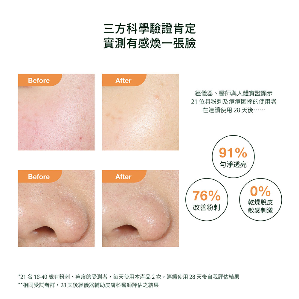 *提醒事項:沒有一個產品適合每一個人,如果使用後有任何皮膚敏感不適,請您先停用、觀察後續皮膚狀況,並聯繫綠藤客服,或視情況尋求醫師協助。