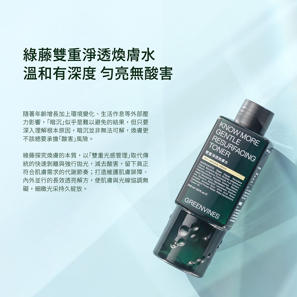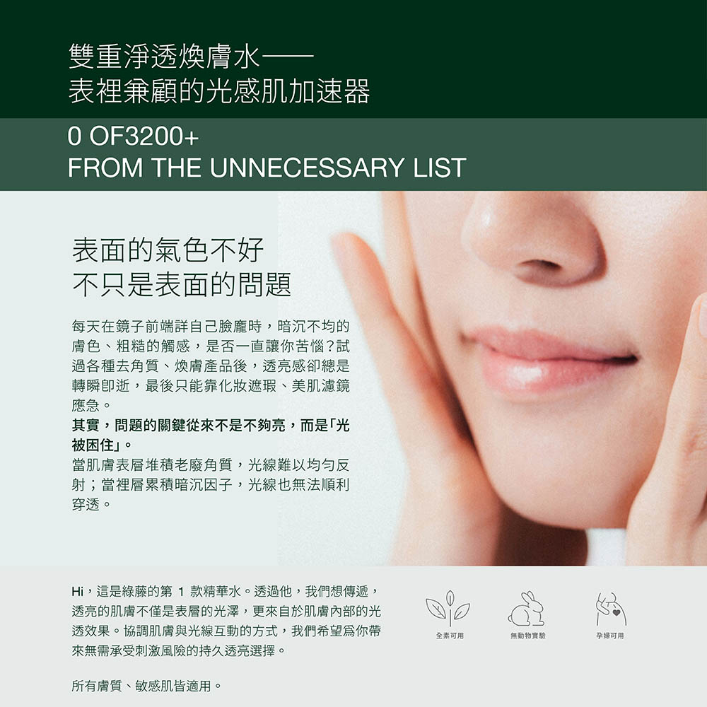 雙重淨透煥膚水——改善暗沉蠟黃、粗糙,達到透亮、細緻