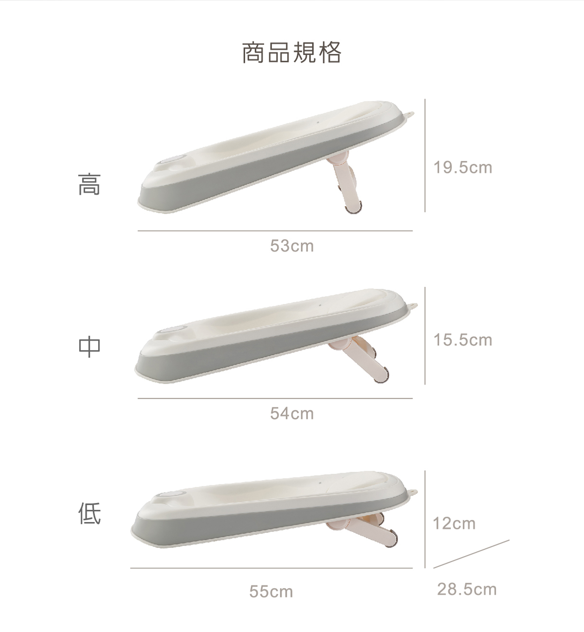 展開尺寸:53x28.5x19.5cm(高)/54x28.8x15.5cm(中)/55x28.5x12cm(低)