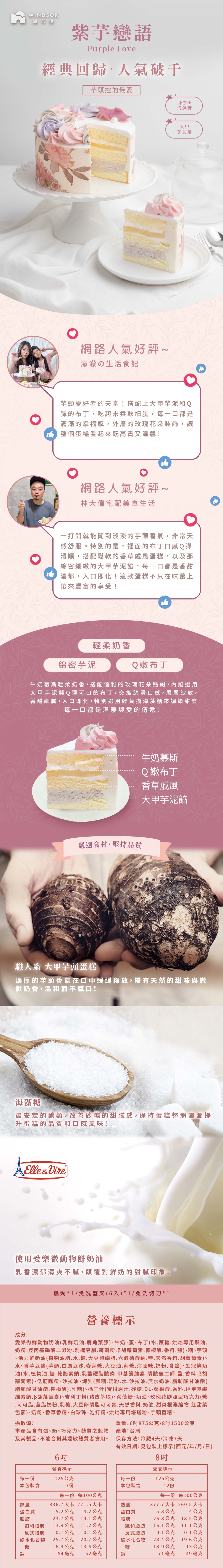 <輕柔奶香×綿密芋泥 ×Q嫩布丁> 牛奶慕斯輕柔奶香,搭配優雅的玫瑰花朵點綴,內餡選用大甲芋泥與Q彈可口的布丁,交織綿滑口感,層層綻放,香甜細膩,入口即化,特別選用輕負擔海藻糖來調節甜度,每一口都是溫暖與愛的傳遞。