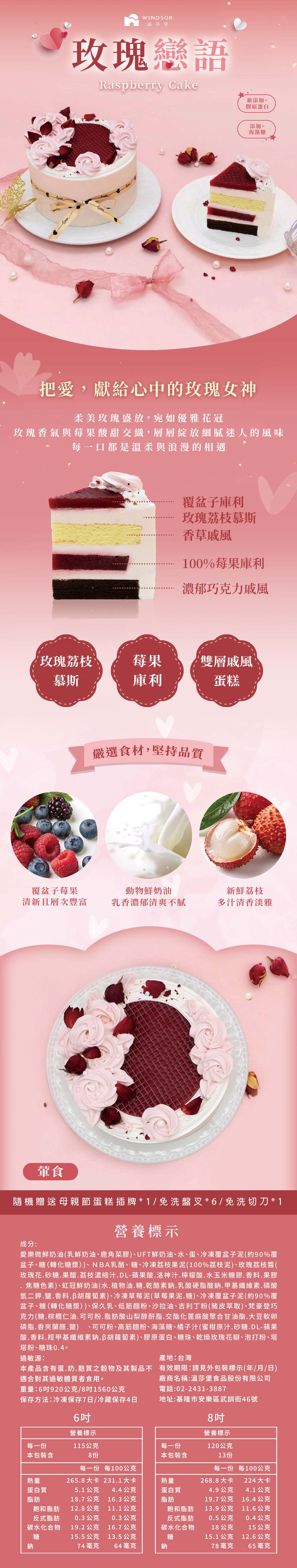 粉色玫瑰綻放浪漫花冠,手捧就像一束精緻花禮 💐,外層覆上淡雅玫瑰粉並添加新鮮荔枝泥細緻優雅,玫瑰與覆盆子酸甜交融,果香清新迷人,搭配香草與濃郁巧克力雙層戚風蛋糕,一次享受雙重口感;並添加海藻糖調節甜度及膠原蛋白讓美味與養顏兼具,風味清爽不膩。今年母親節 把愛,獻給心中的 玫瑰女神。