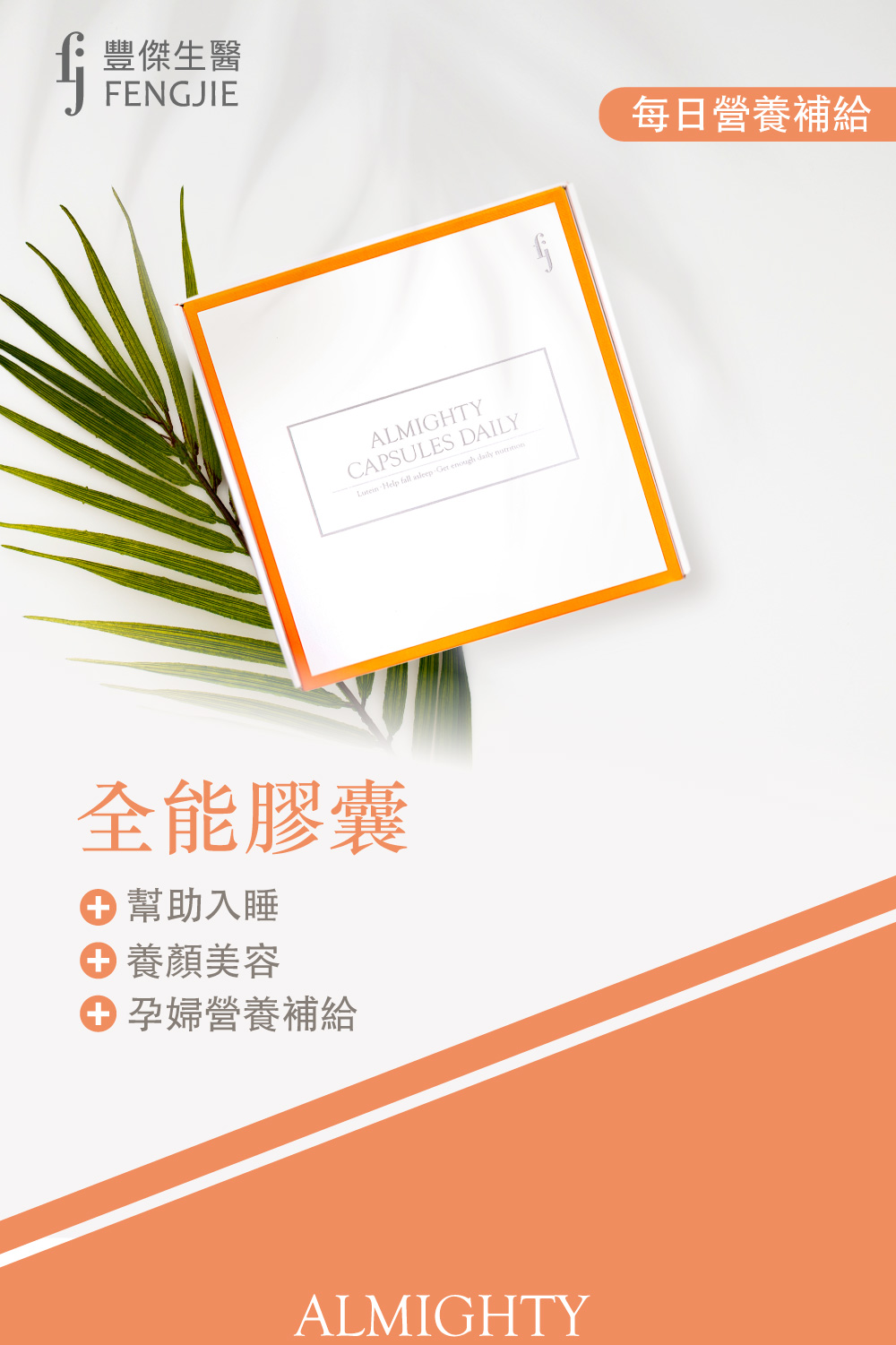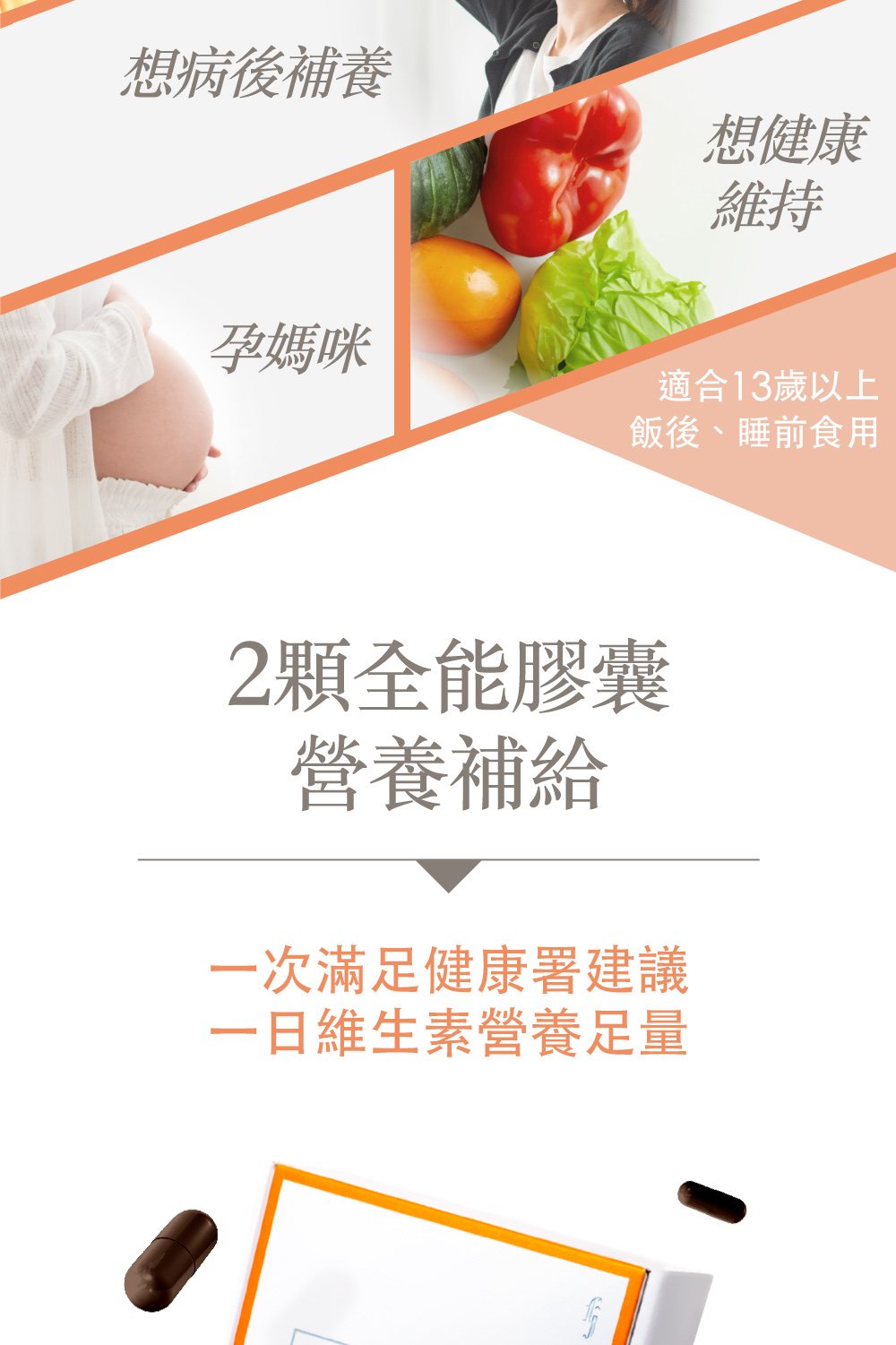 現代人容易飲食不均,因此豐傑針對所有年齡層打造的全能膠囊,不僅是男性、女性,同時也是孕婦、兒童綜合維他命,一次補足大眾的基礎營養所需。