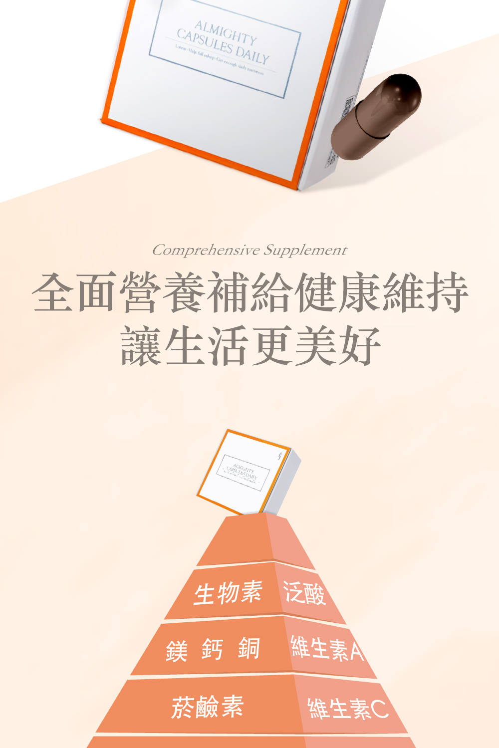 全能膠囊專為所有年齡層設計,可放心食用,無添加糖、脂肪、調味型添加物。