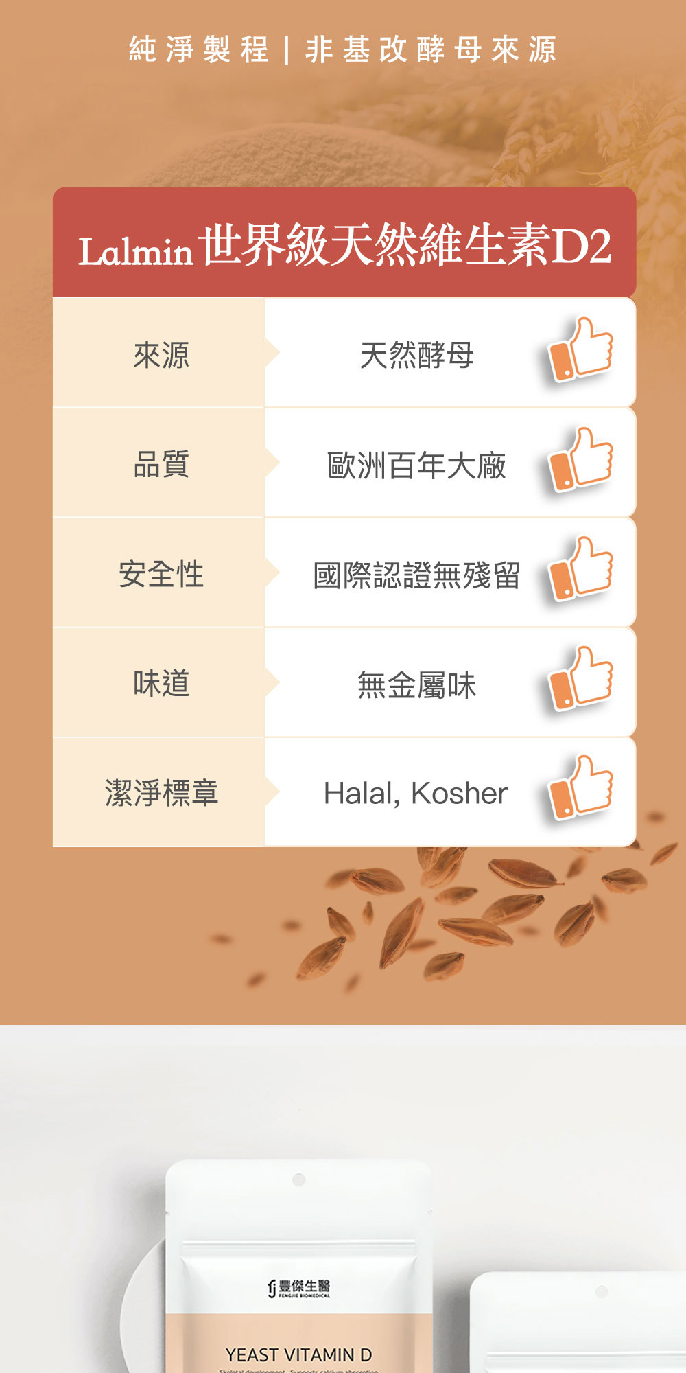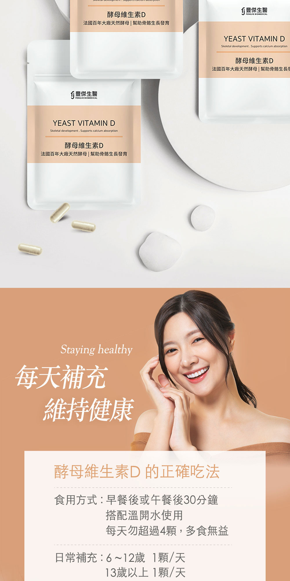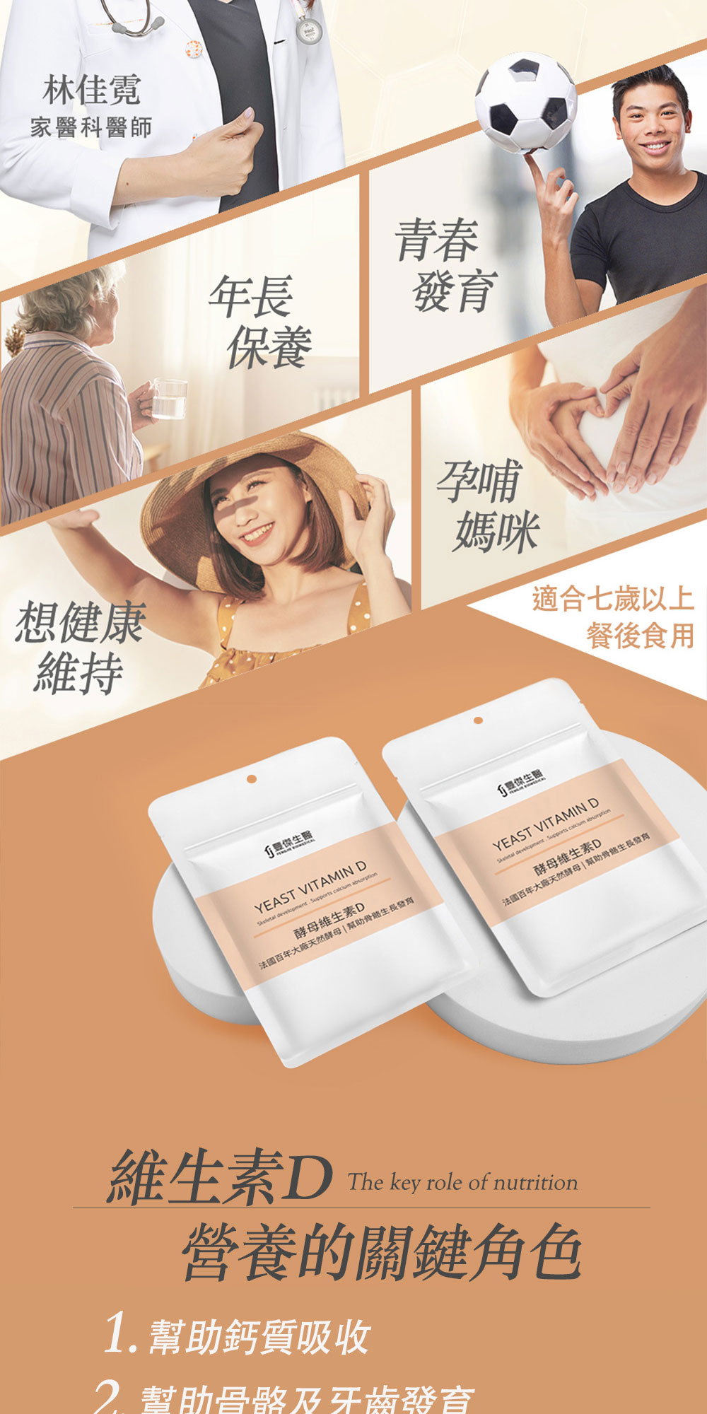 好吸收來源幫助骨骼牙齒生長發育、自然來源安全放心、足量陽光維生素、維持肌肉與神經的正常生理