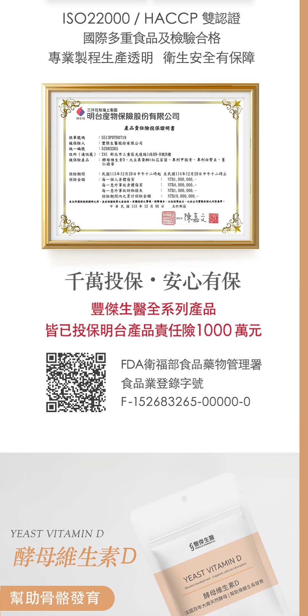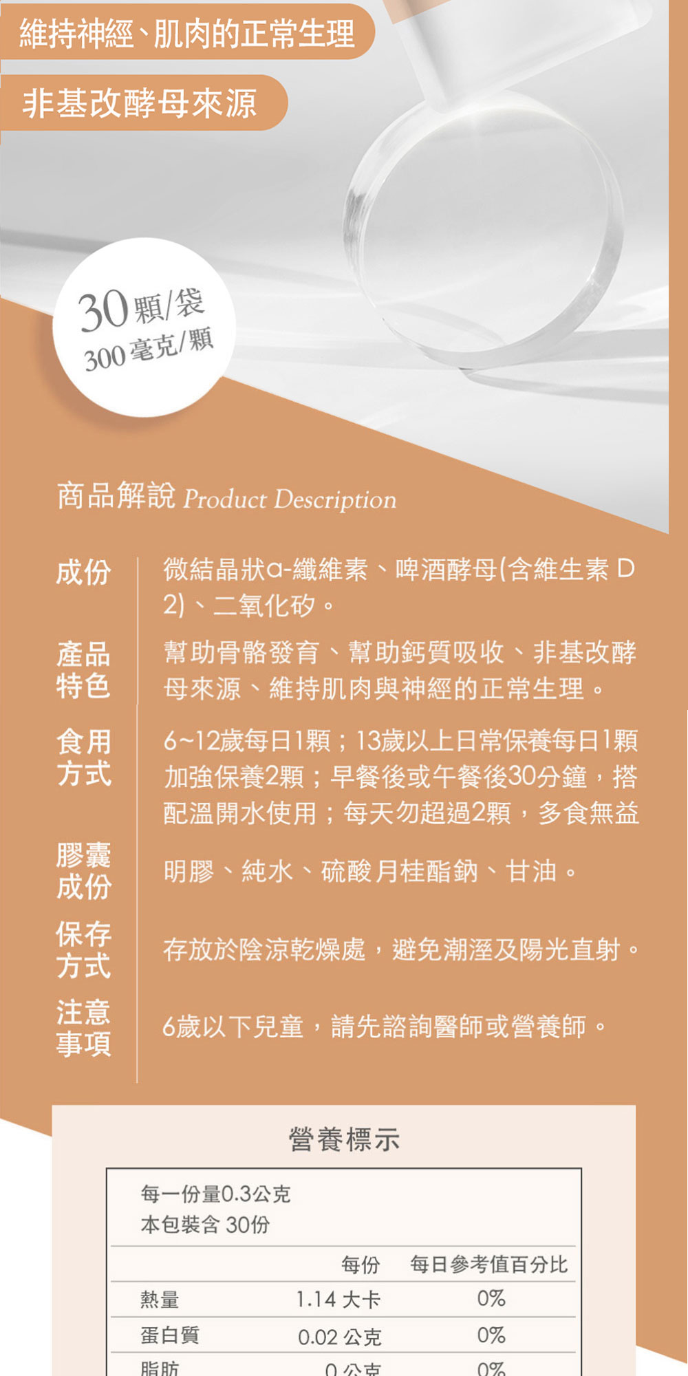 幫助骨骼發育、幫助鈣質吸收、非基改酵母來源、維持肌肉與神經機能。
