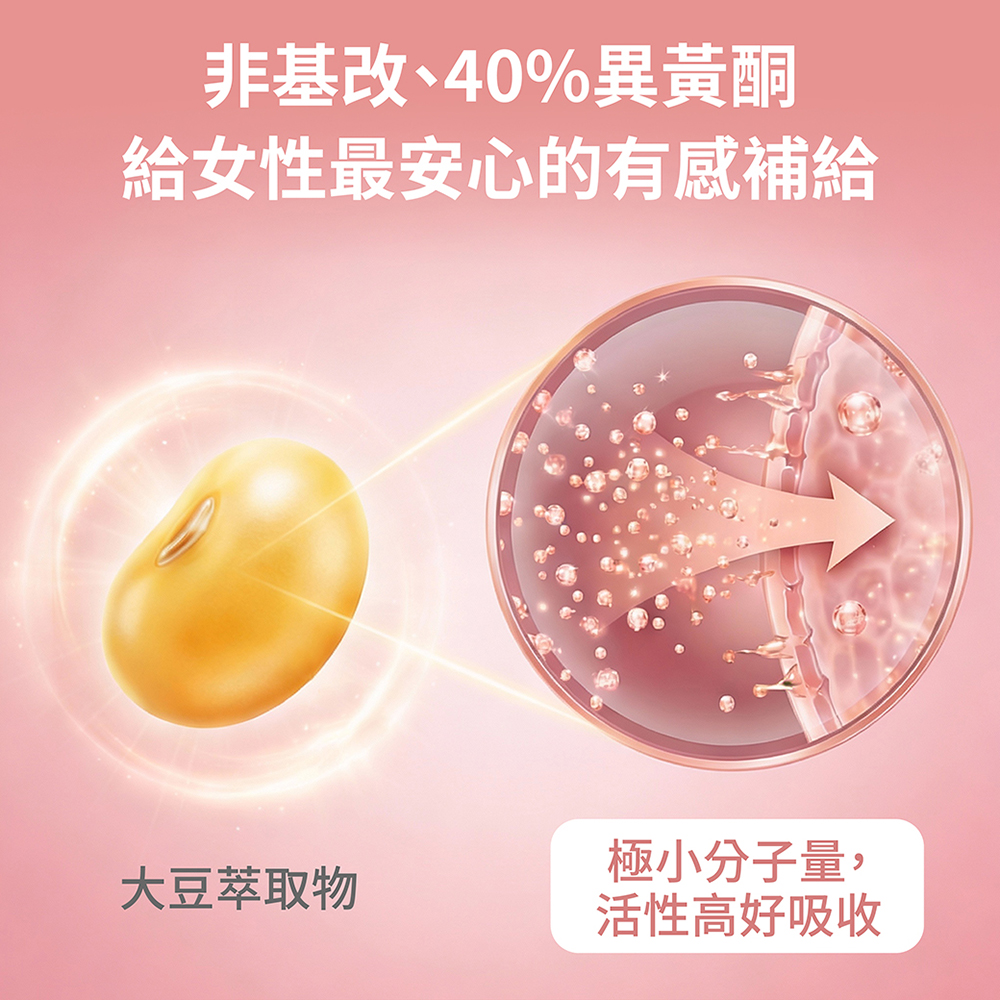➤ 含40%大豆異黃酮,多種植物性異黃酮素