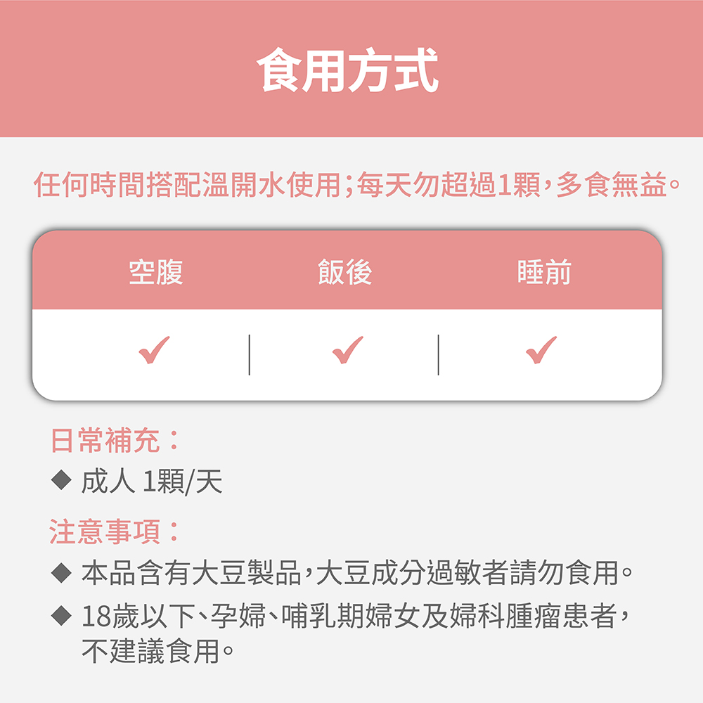 ➤ 每日1顆,任一時間食用