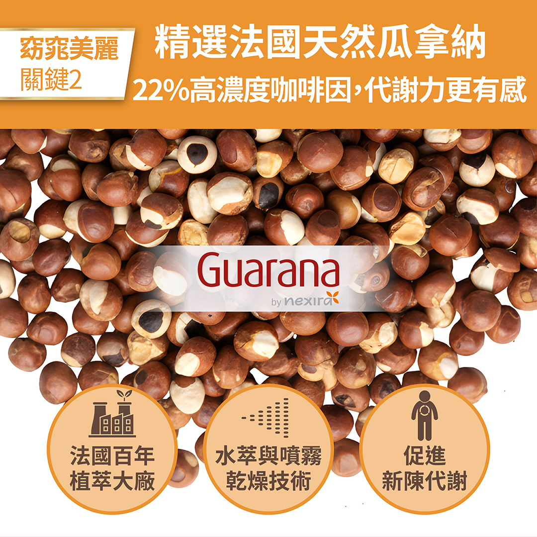 ➤瓜拿納、肉鹼、綠茶促進新陳代謝