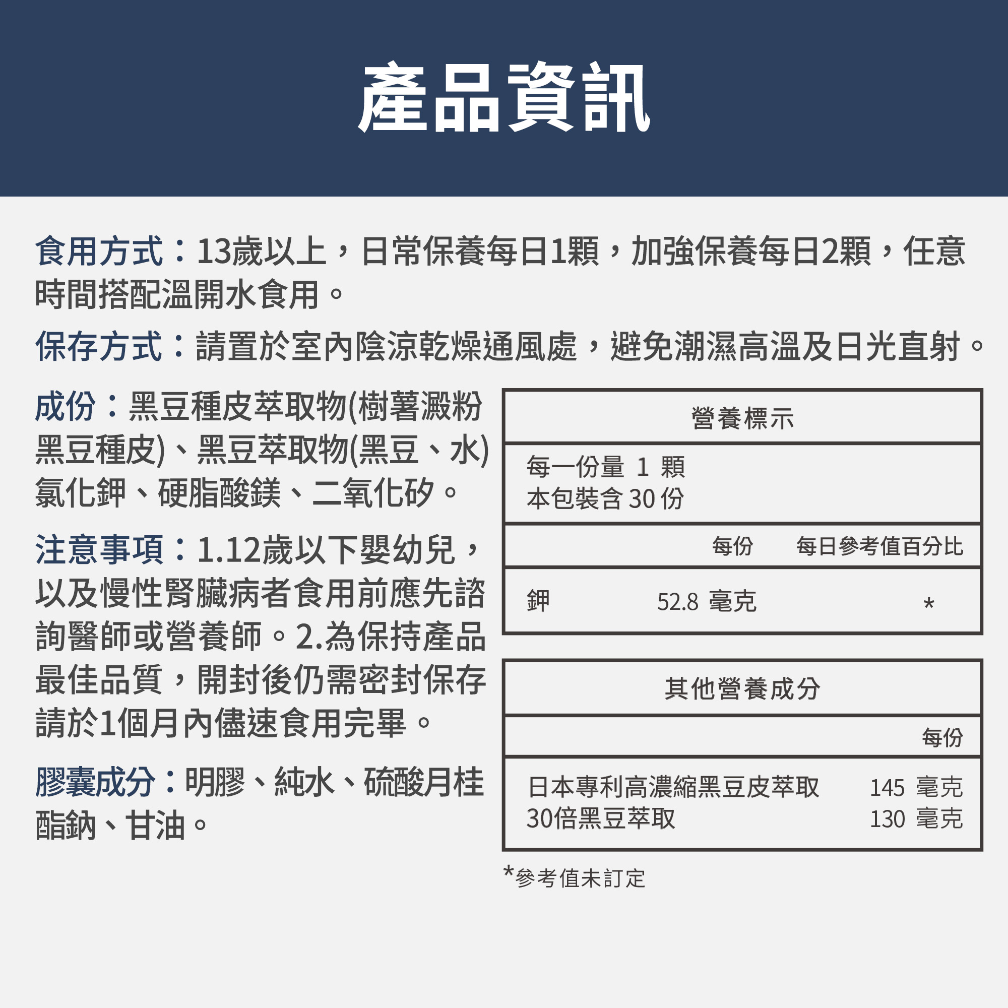 ➤特選搭配30倍濃縮植萃黑豆萃取
