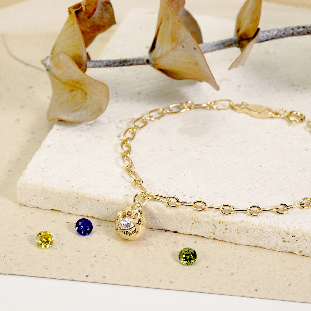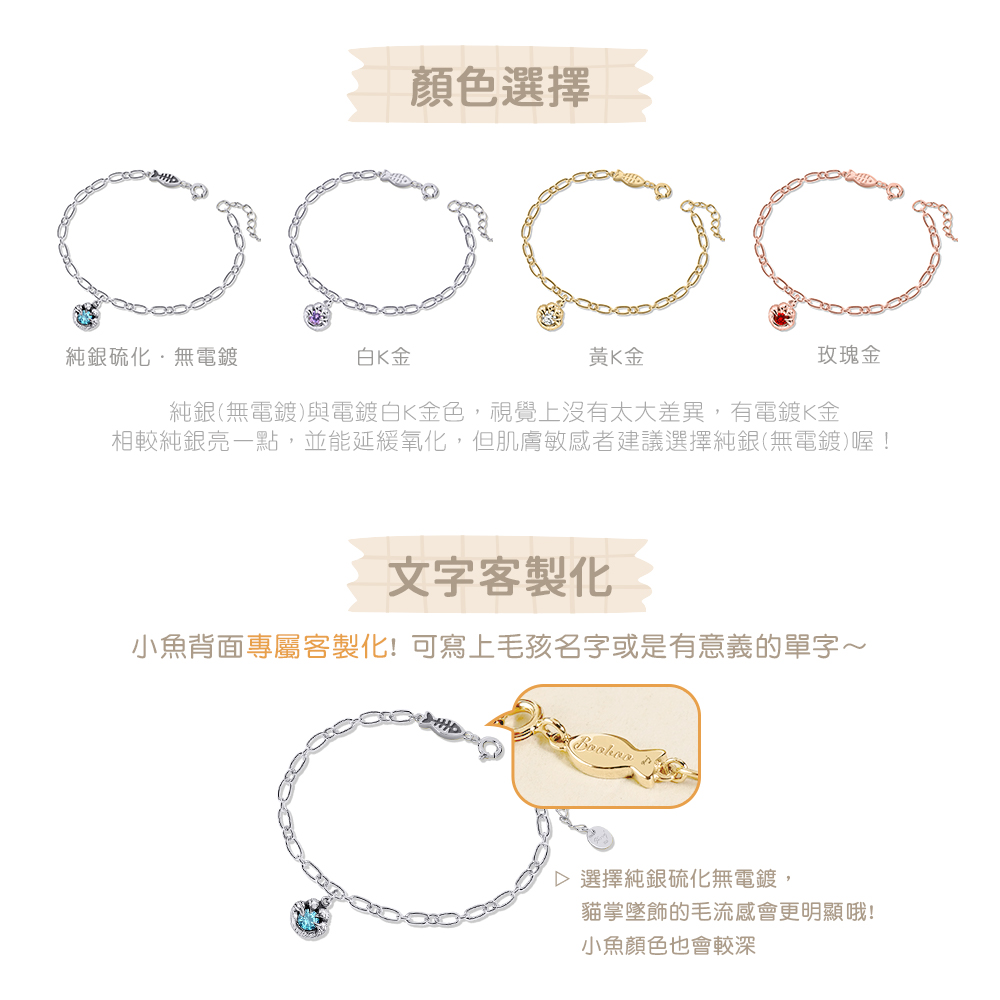 STORY故事銀飾-可愛肉球系列-貓掌誕生石晶鑽純銀手鍊