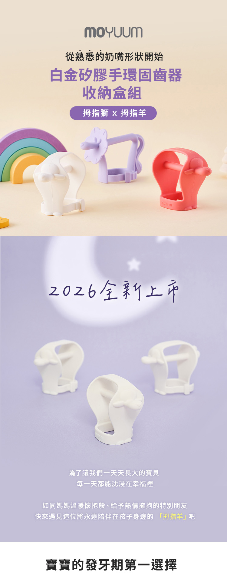 MOYUUM 韓國 白金矽膠手環固齒器收納盒組 拇指獅&拇指羊