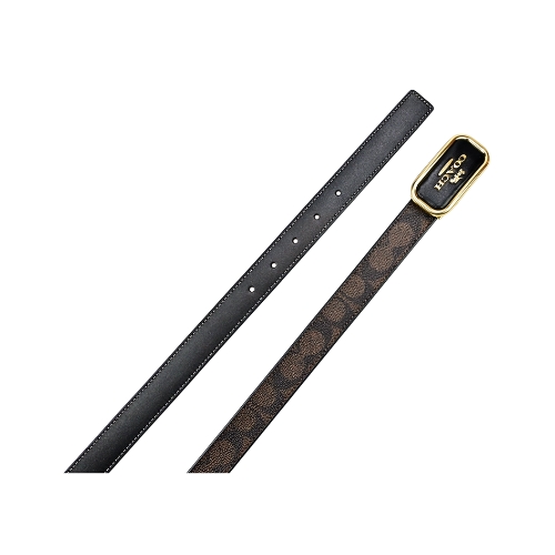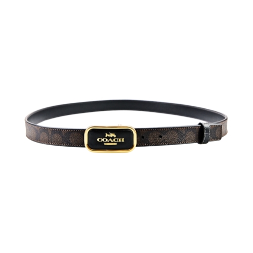 COACH女用皮帶,金屬方框字牌穿扣式釦頭搭配五孔設計易於隨個人需求調整,質感佳、風格優雅好搭。★尺寸:五孔式調整全長120CM/寬2.5CM,金屬方框釦頭寬7CM