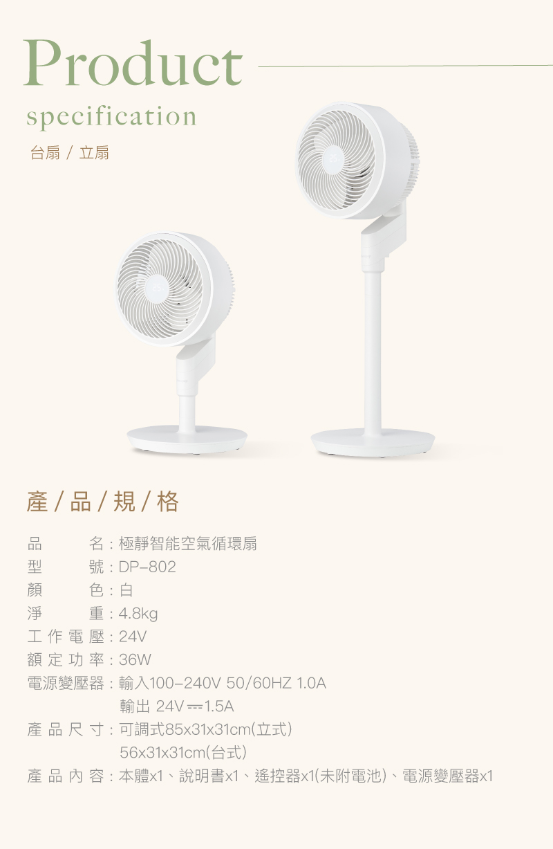 【decopop】新年賀禮-淨離子極靜智能循環扇 DP-802 (TVOC空氣監測/電扇/立扇/桌扇/遙控) | NearMe | 線上送禮平台『獨家支援 收禮者改選禮物』