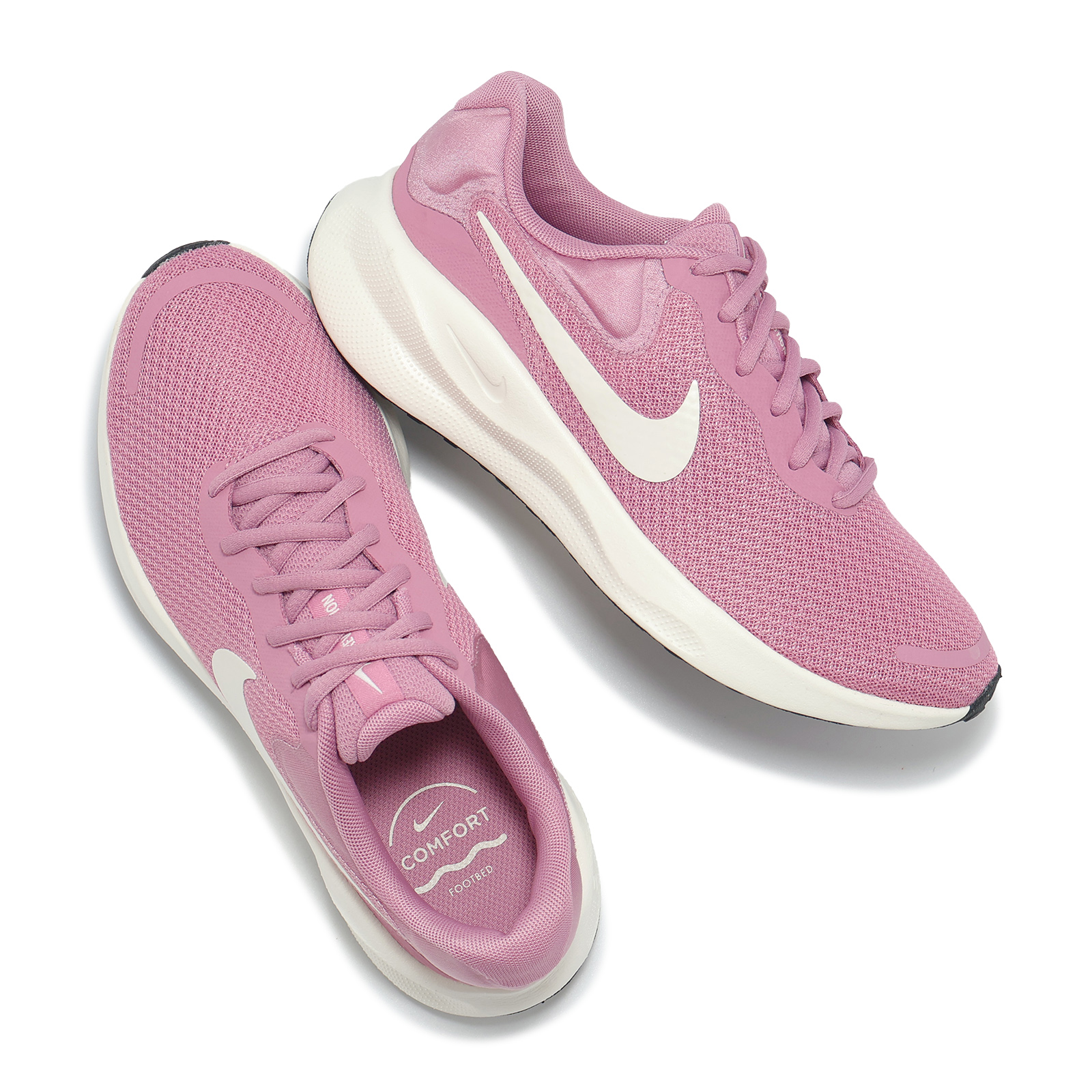 品牌: NIKE型號: FB2208-604品名: Wmns Revolution 7版型: 版型偏小, 建議大半號* 輕量化的鞋面,除了保有著感透氣的機能性外,更強化鞋跟及外層,使整雙鞋包覆性更佳。