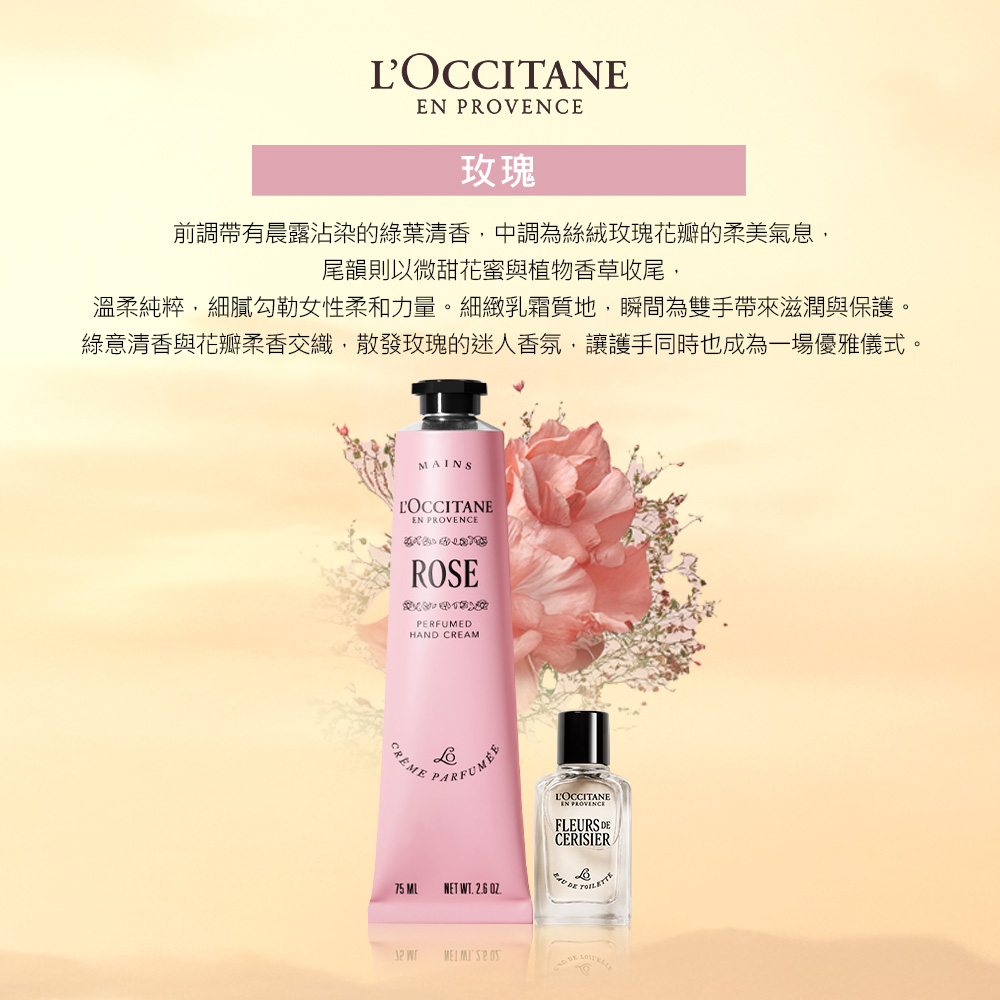 蘊含玫瑰香氛精萃,搭配細緻乳霜質地,瞬間為雙手帶來滋潤與保護。綠意清香與花瓣柔香交織,散發玫瑰的迷人香氛,讓護手同時也成為一場優雅儀式。