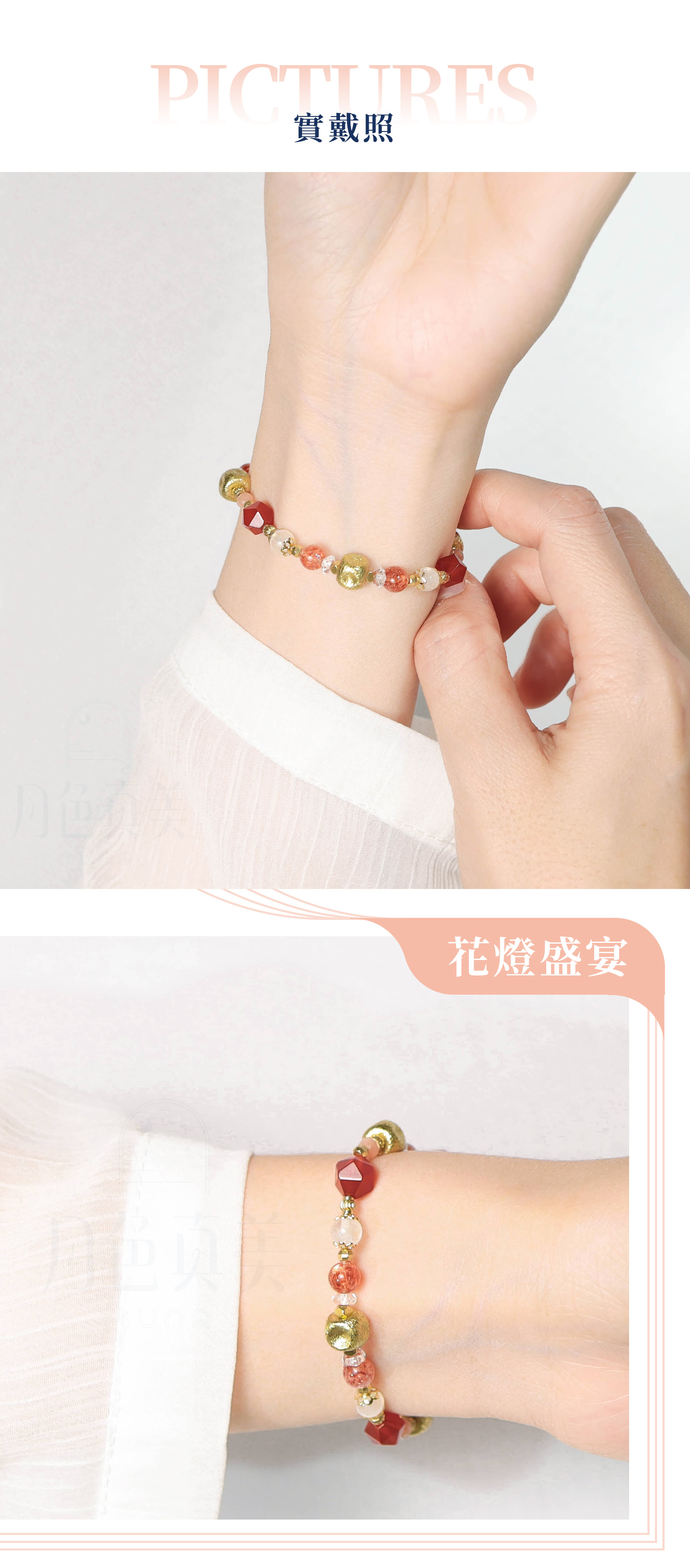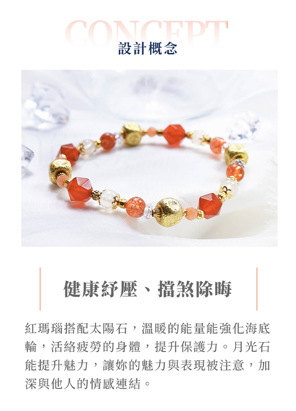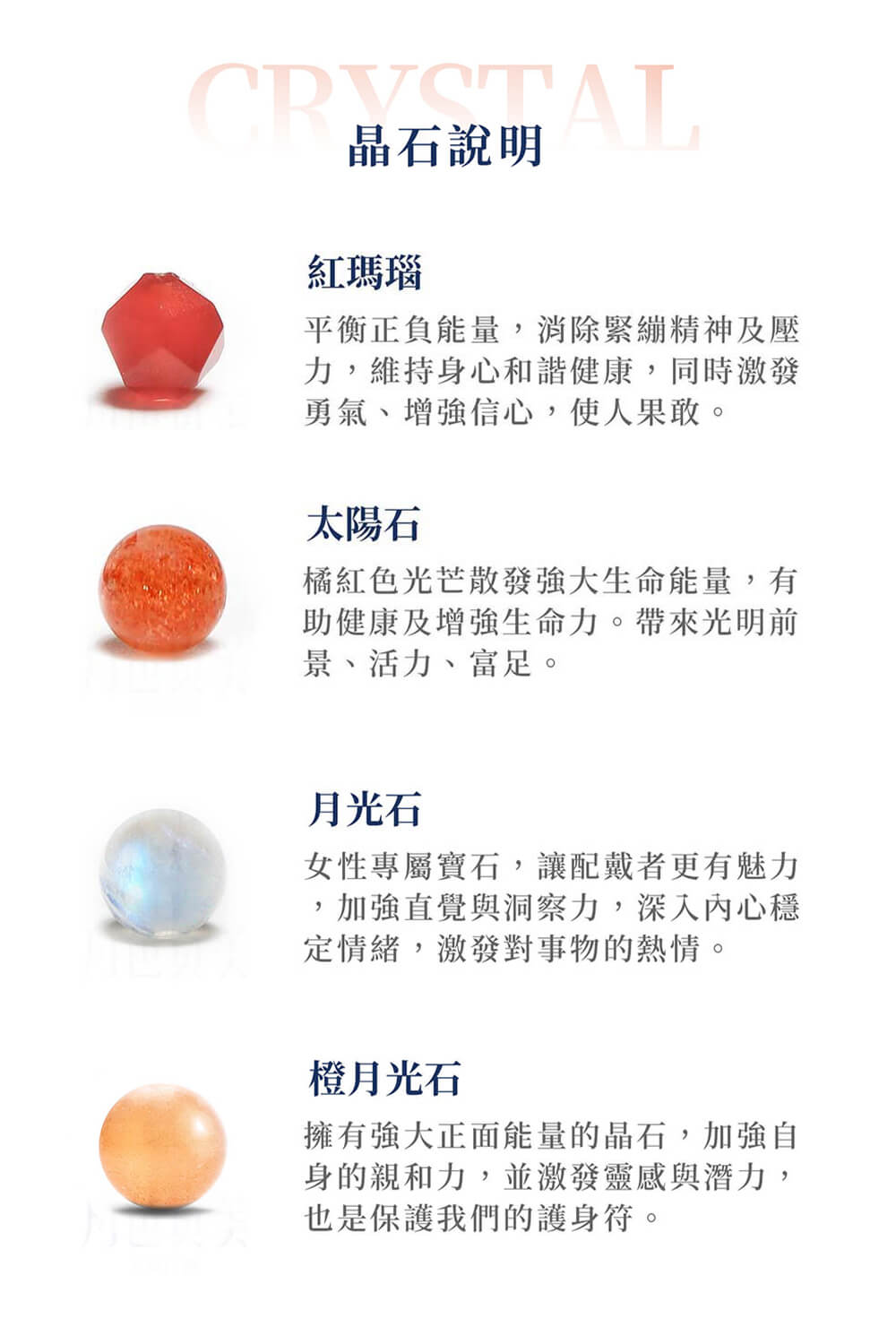 ・橙色月光石、海藍寶、鈦晶、拉長石、白水晶