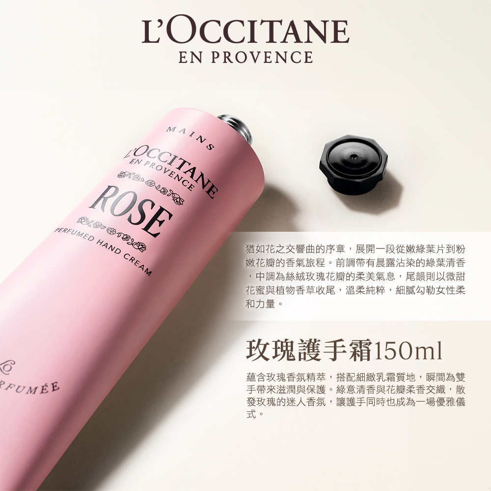 蘊含玫瑰香氛精萃,搭配細緻乳霜質地,瞬間為雙手帶來滋潤與保護。綠意清香與花瓣柔香交織,散發玫瑰的迷人香氛,讓護手同時也成為一場優雅儀式。