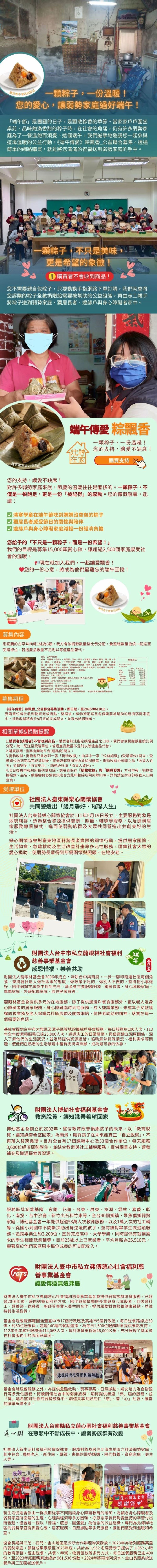 商品介紹◆一顆粽子,一份溫暖!◆您的愛心,讓弱勢家庭過好端午!◆勸募字號:衛部救字第1141363121號◆勸募字號 : 衛部救字第1141364062號◆勸募字號 : 府授社團字第1140409223號◆勸募字號 : 衛部救字第1141360947號 ◆勸募字號 : 府社救字第1140180011號