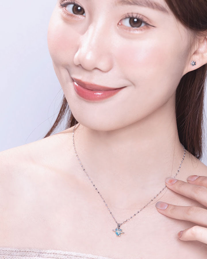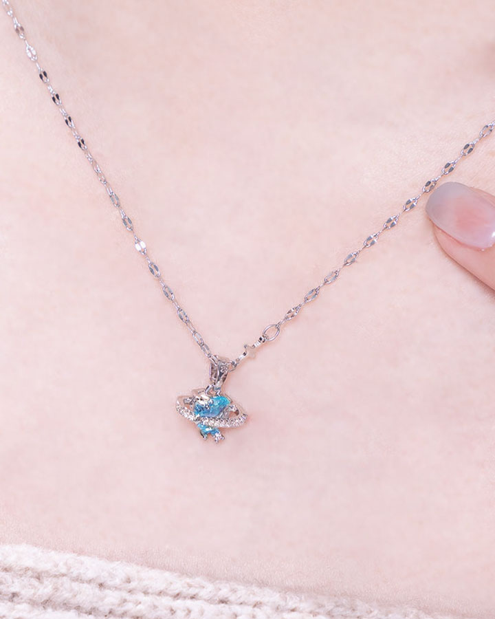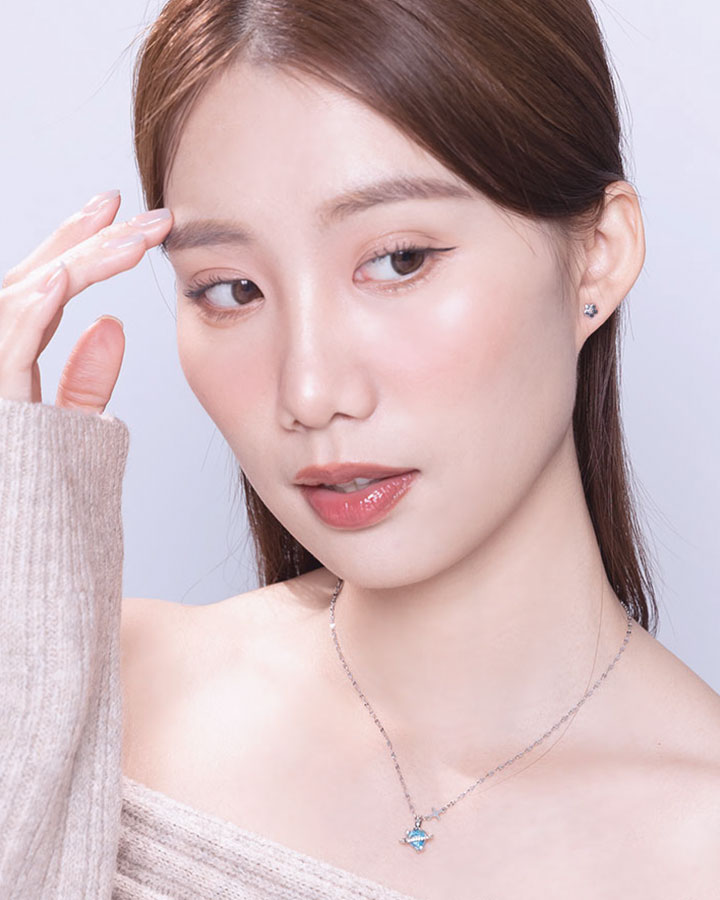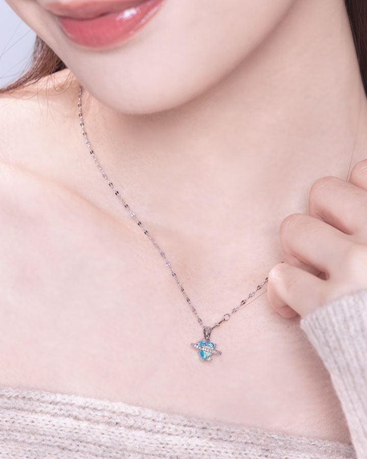 以其精緻的愛心吊墜和閃亮的藍色寶石,散發出優雅而夢幻的氣息。